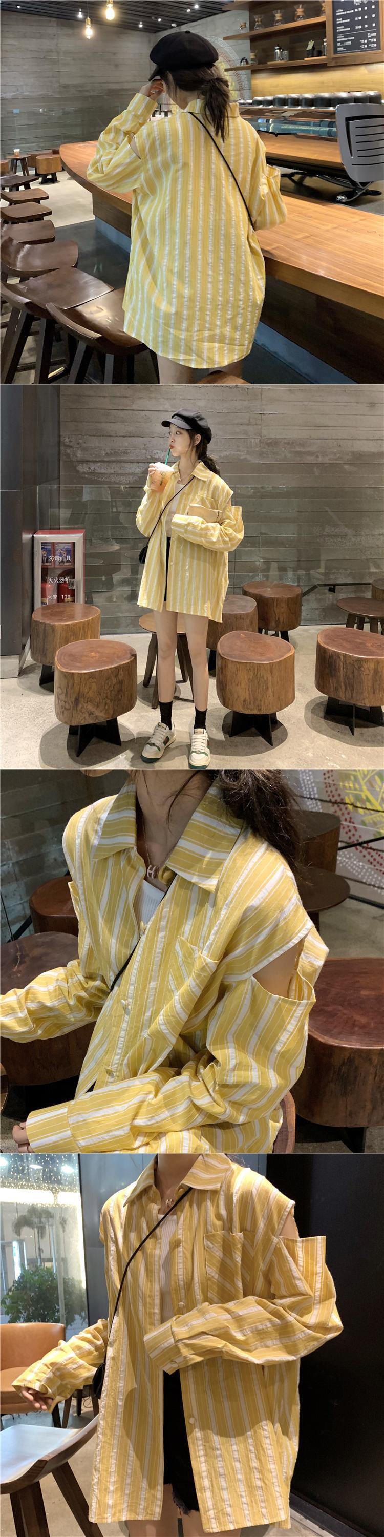 2020年春秋バージョンの新デザインセンス、丁寧なマシンホール、ゆったりとしたミドル丈のストライプ長袖シャツ女子学生 misskkl99501759428