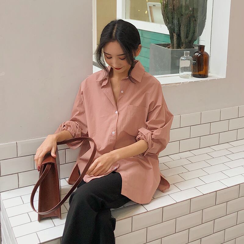 春秋バージョン2020新作ルーズミドル丈スモールホワイトポロカラー長袖シャツ女性カップルトレンド misskkl72343307233