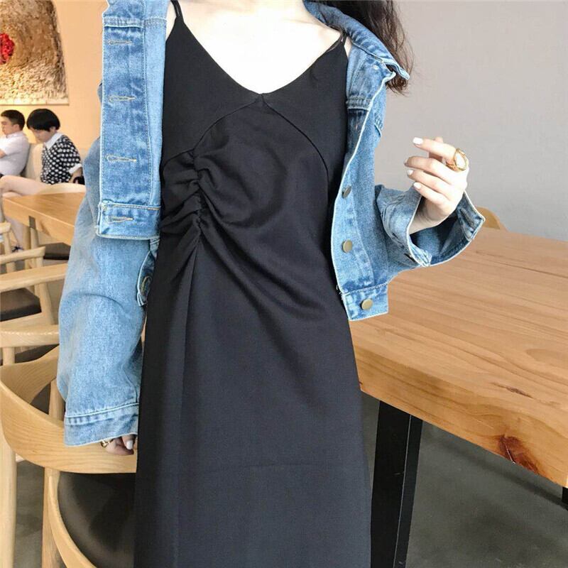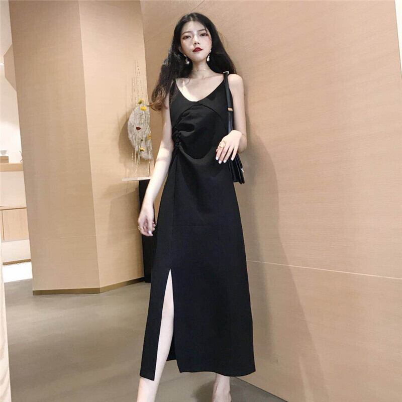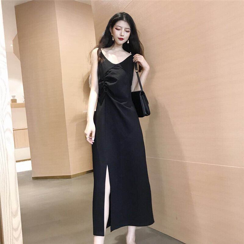 2020年春秋バージョンの新デザインセンスフォールドスプリットスリムスリミングミドル丈スリングドレス女子学生 misskkl54864810784