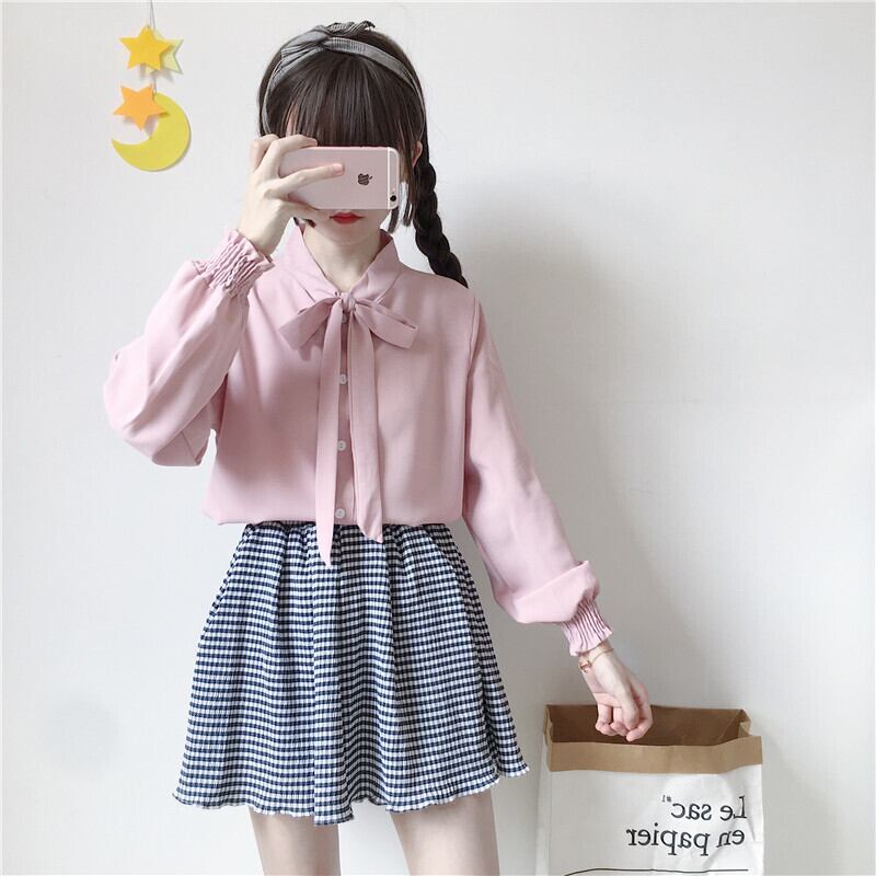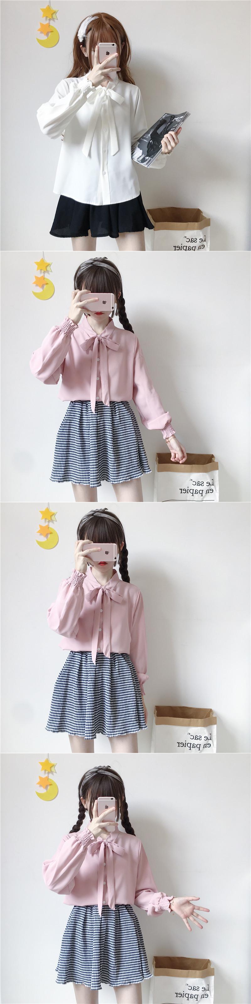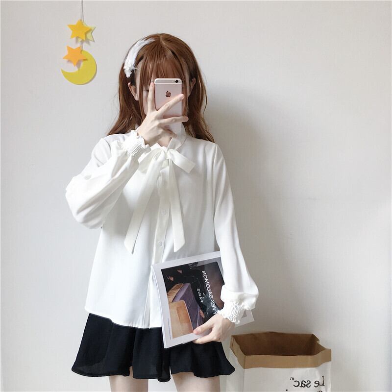 2020年春秋新しい甘くてルーズなカレッジスタイルの蝶ネクタイとパフスリーブの白い気質の長袖シャツの女性 misskkl21710179245