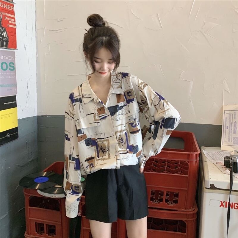 2020年春秋新作レトロアートルーズミドル丈ポロカラー赤外線着用長袖日焼け止めシャツ女性 misskkl91341751650