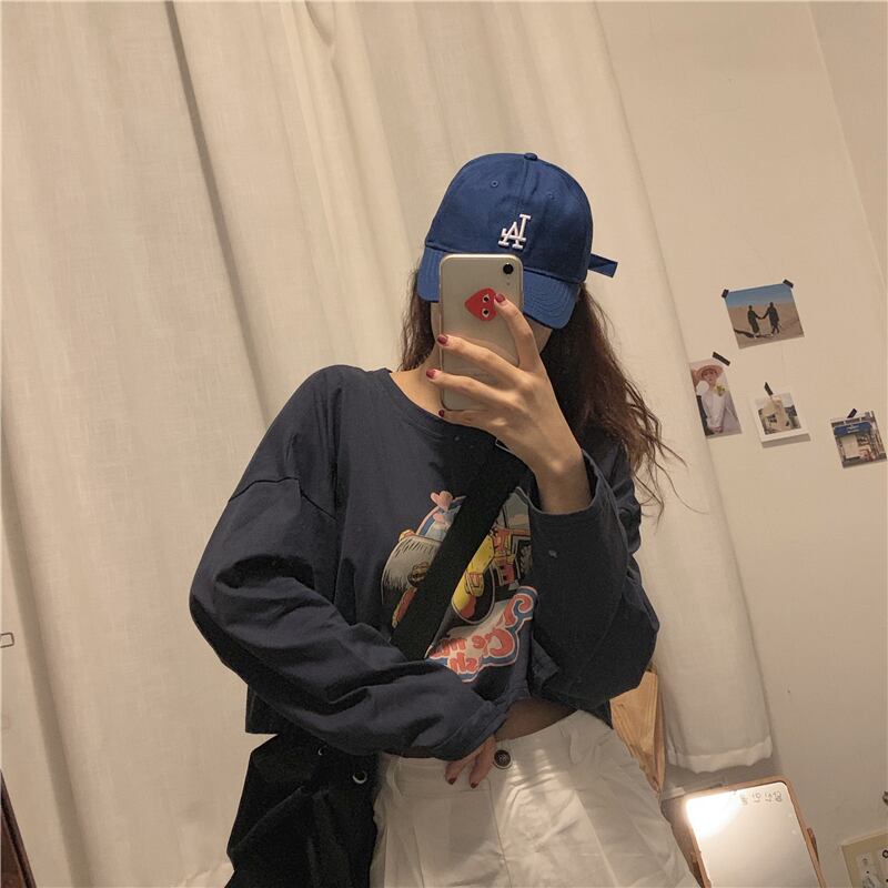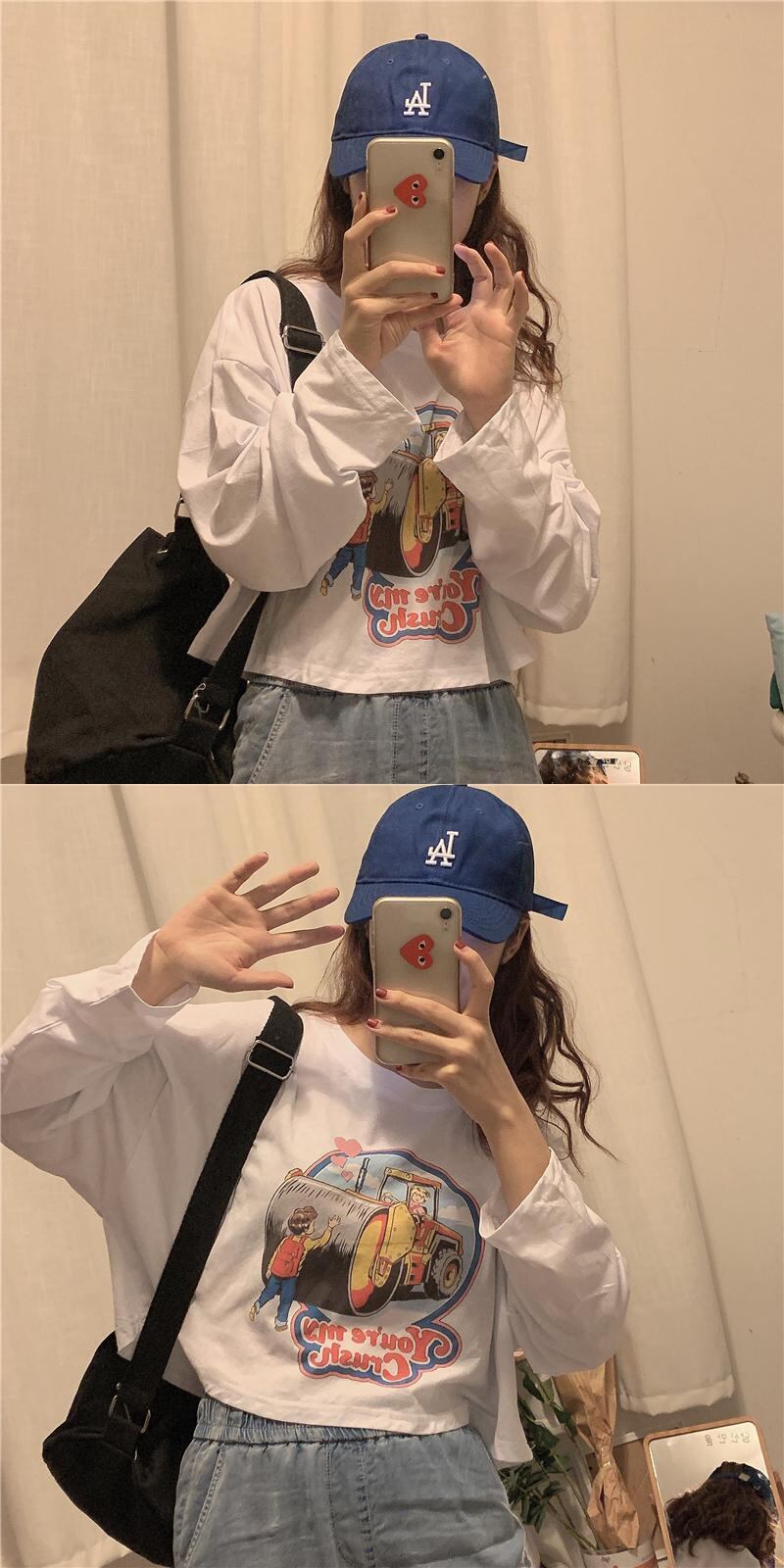 2020年春夏の漫画プリントショートクロップトップルーズで用途の広い学生用日焼け止め長袖Tシャツ女性トレンド misskkl86353407766