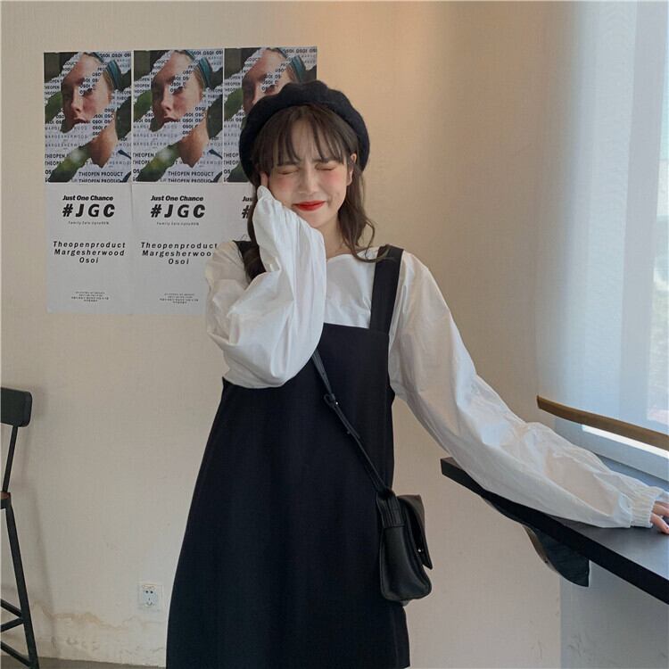 春と秋のバージョン2020新しいシックなフレンチスタイルの薄いカバー肉ミドル丈の学生の黒いストラップスカート女性のツーピーススーツ misskkl84093230013