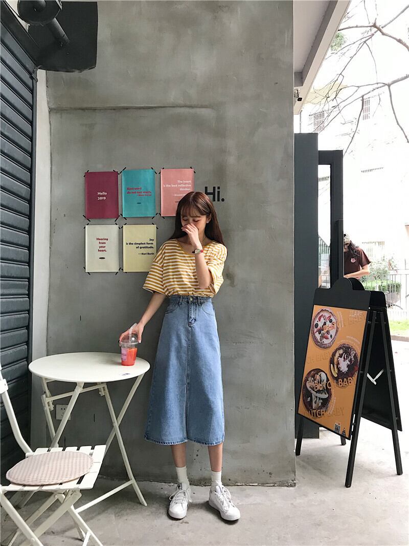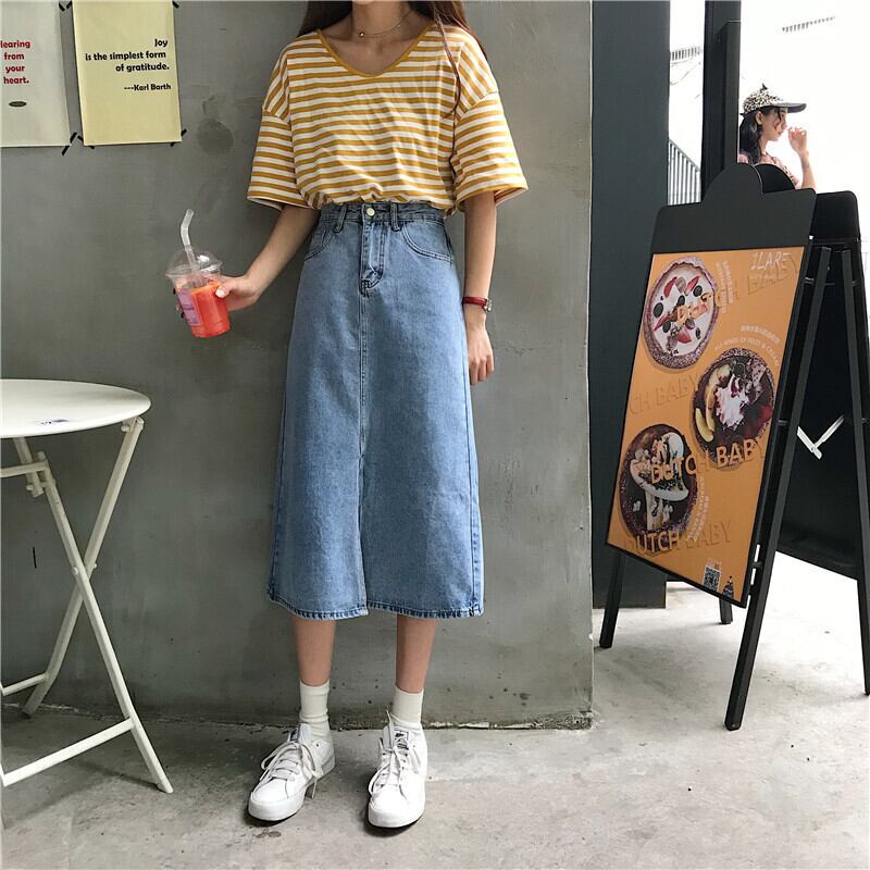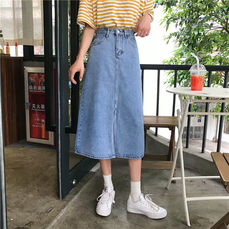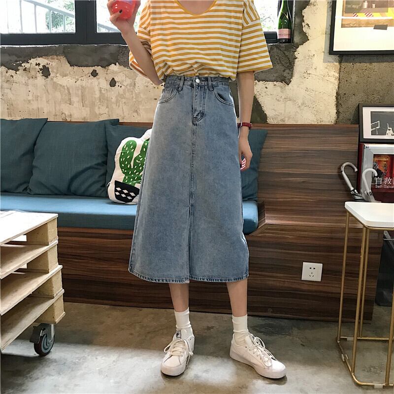 春夏スタイルのミドル丈スカートオールマッチハイウエストAラインスカートレディーススプリットデニムスカートスリムスリムスカート misskkl84670227436