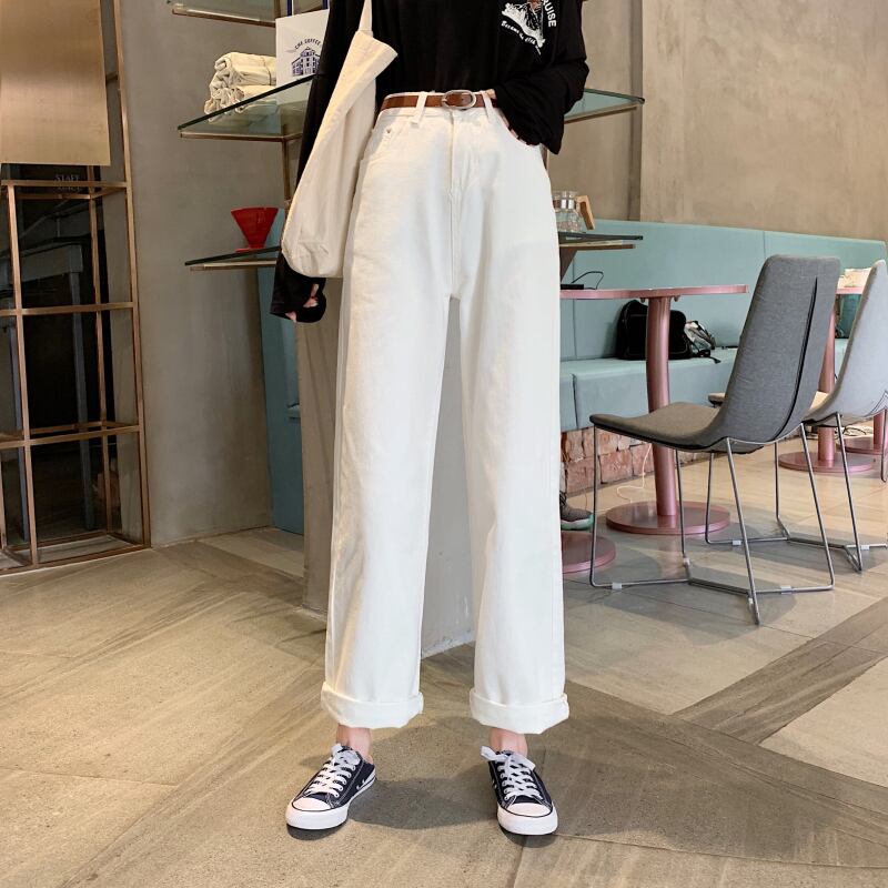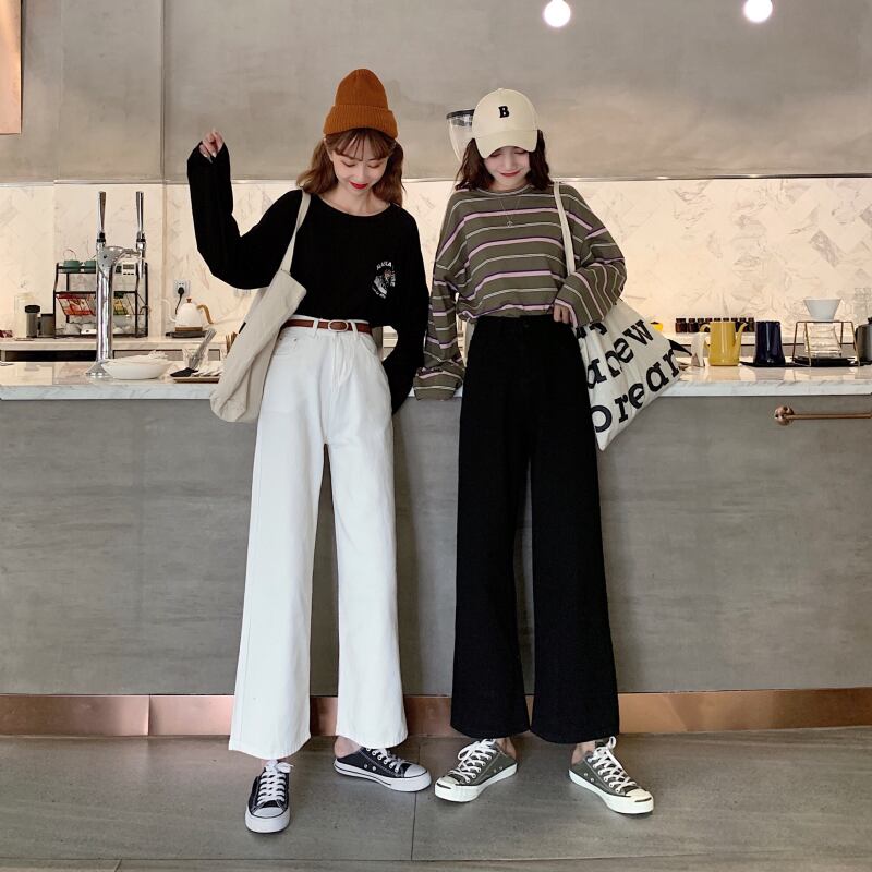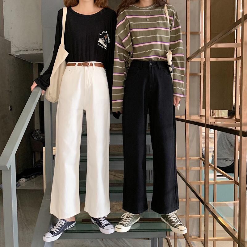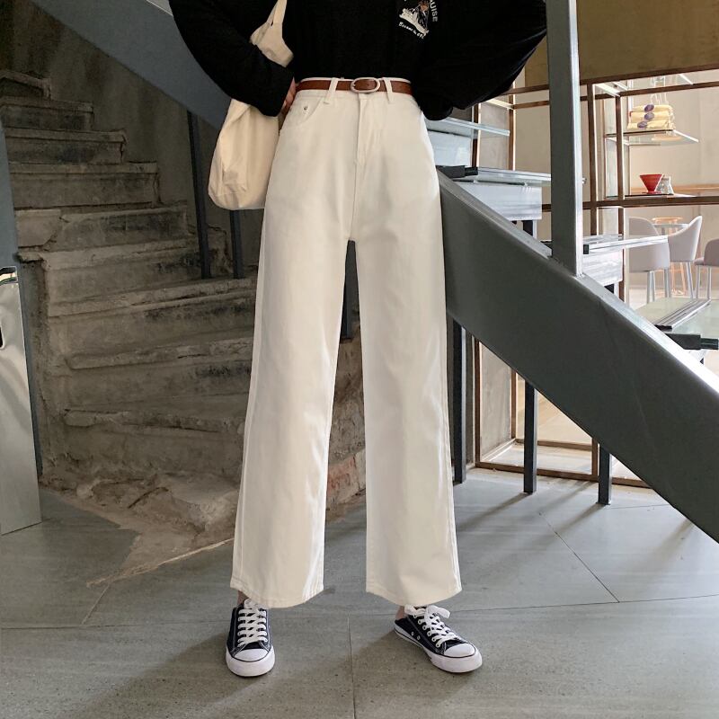春秋バージョン2020新しいホワイトブラックジーンズシックなハイウエストスリミングワイルドネットレッドワイドレッグパンツ女性 misskkl49128990036