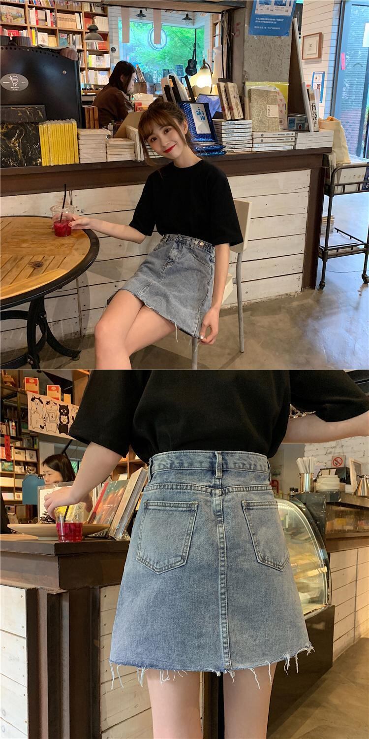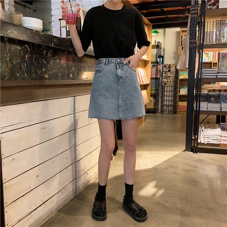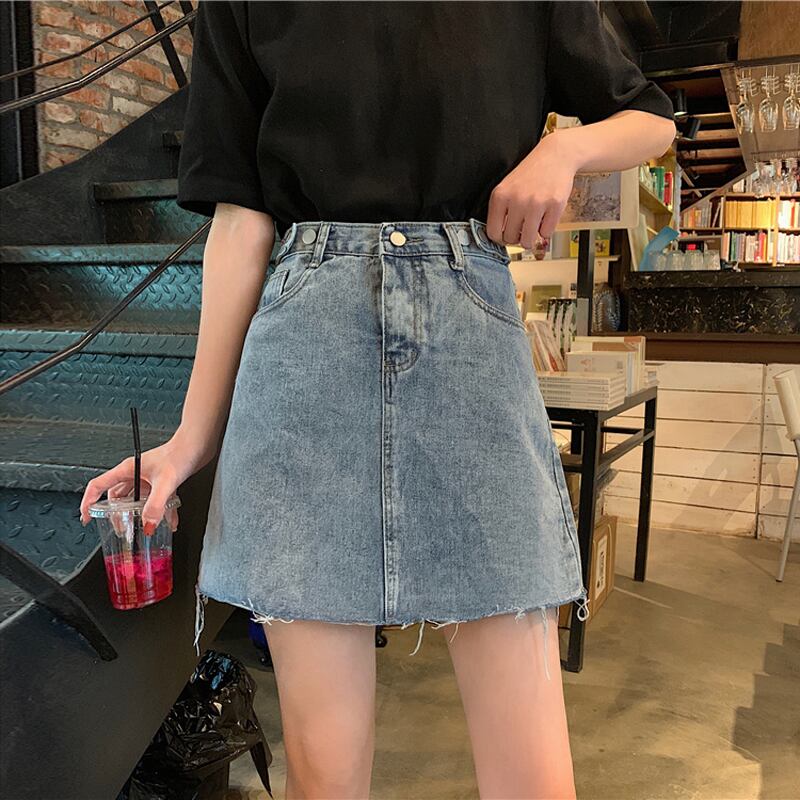 春秋バージョン2020新ハイウエストスリミングイン学生ファッション破れたデニムスカートAラインスカート女性トレンド misskkl96505245592