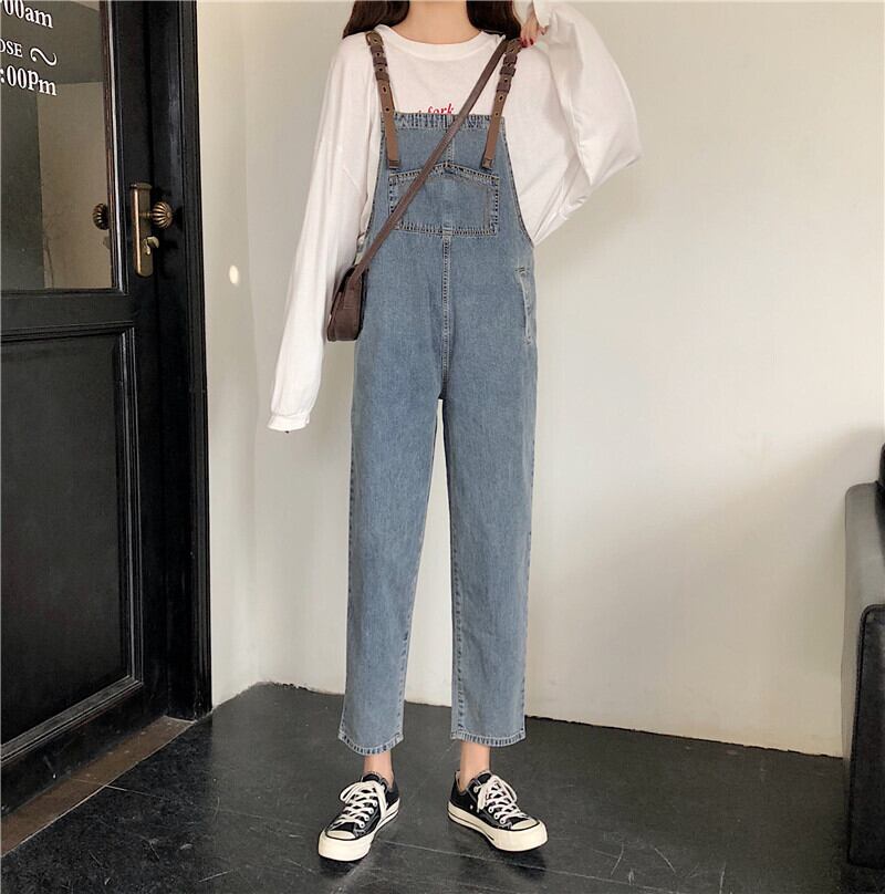 2020年春秋バージョンの新作スタイル、ハイ、シン、ハイウエスト、ルーズエイジ、ウォッシュドナインデニムビブ女子学生 misskkl29028701852