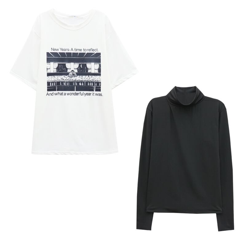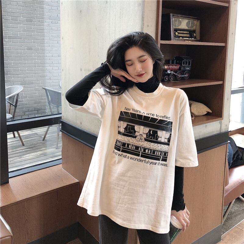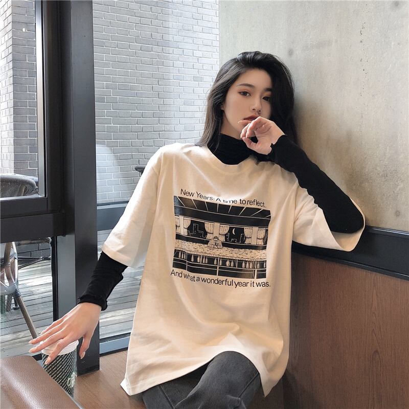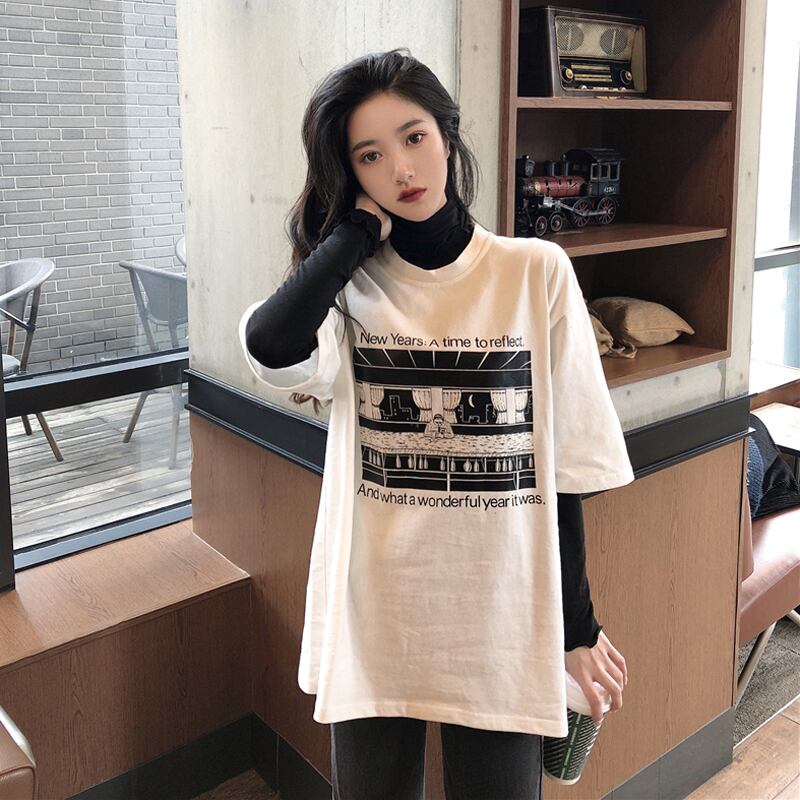 2020年春秋新作レトロ漫画レタープリントルーズミドル丈学生服5点スリーブTシャツ女性 misskkl59999303218
