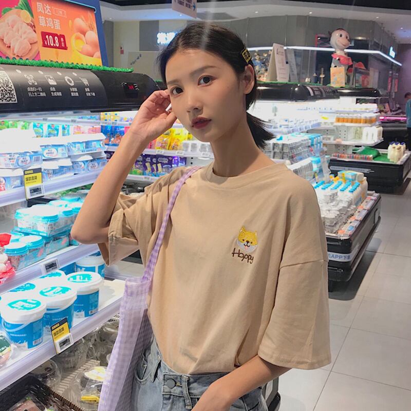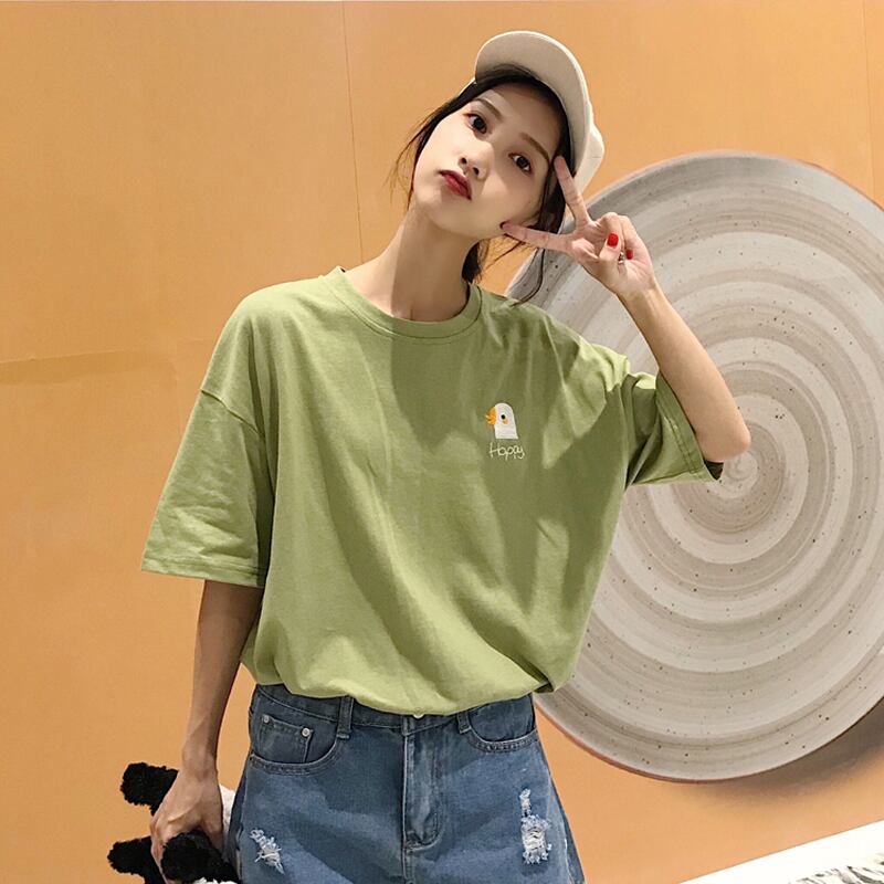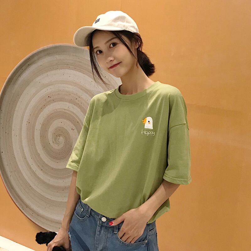 2020年夏新しい小さな新鮮なルーズミドル丈漫画の手紙刺繡アボカドグリーン長袖Tシャツ女性 misskkl29648269993