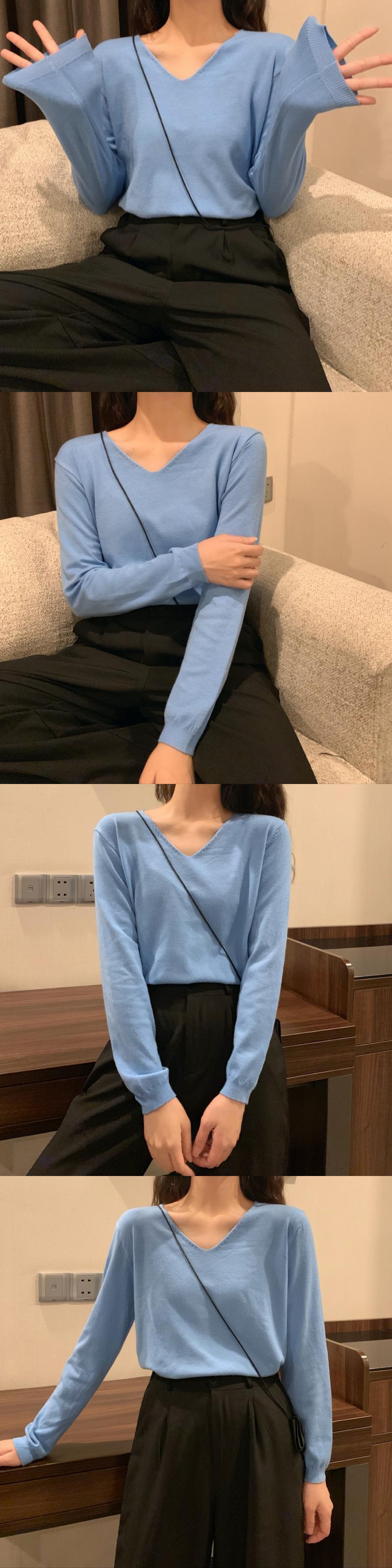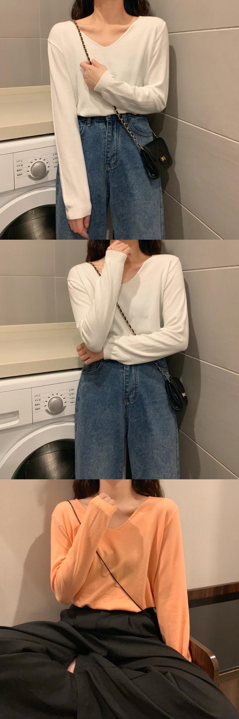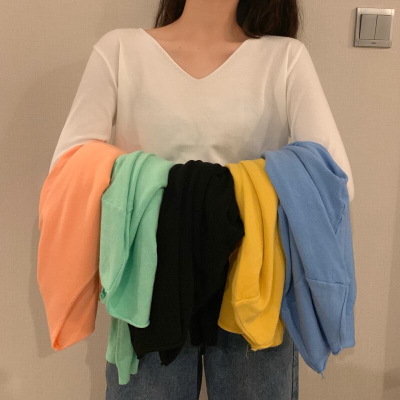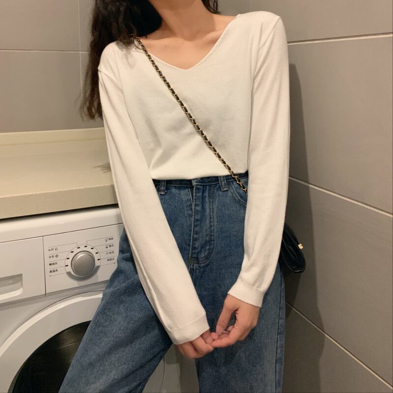春秋バージョン2020新作キャンディーカラーやや透明感のある薄手のワイルドVネックボトミング長袖セータートップ婦人服 misskkl53083170847