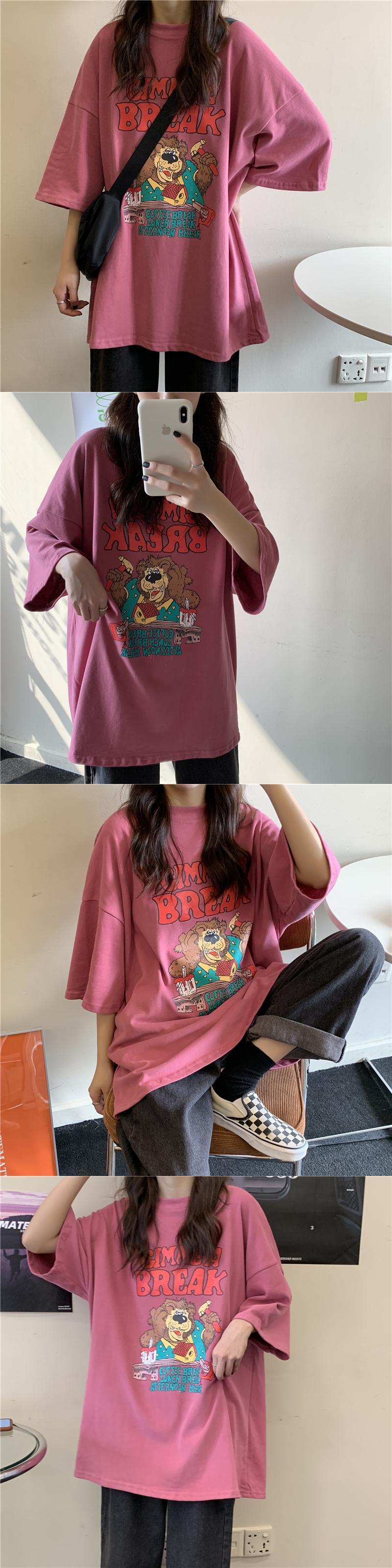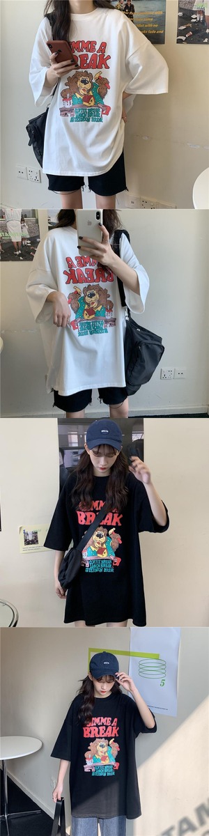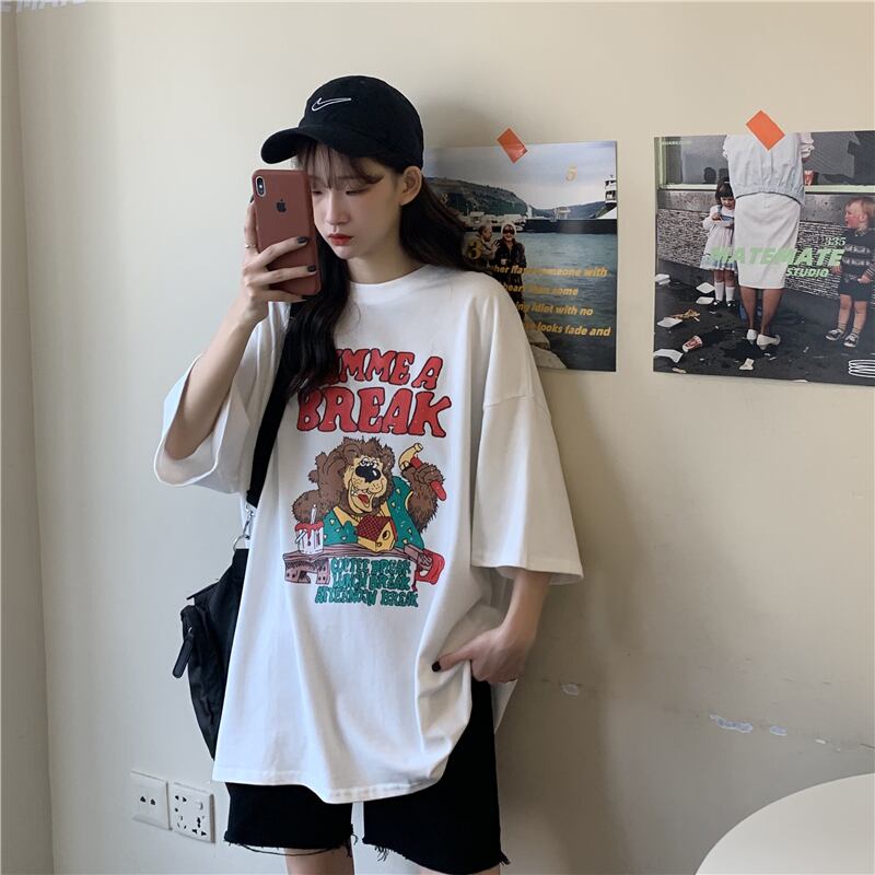 夏バージョン2020新しいins楽しい漫画の手紙ルーズミドルレングスネット赤白半袖Tシャツ女性 misskkl24403697810