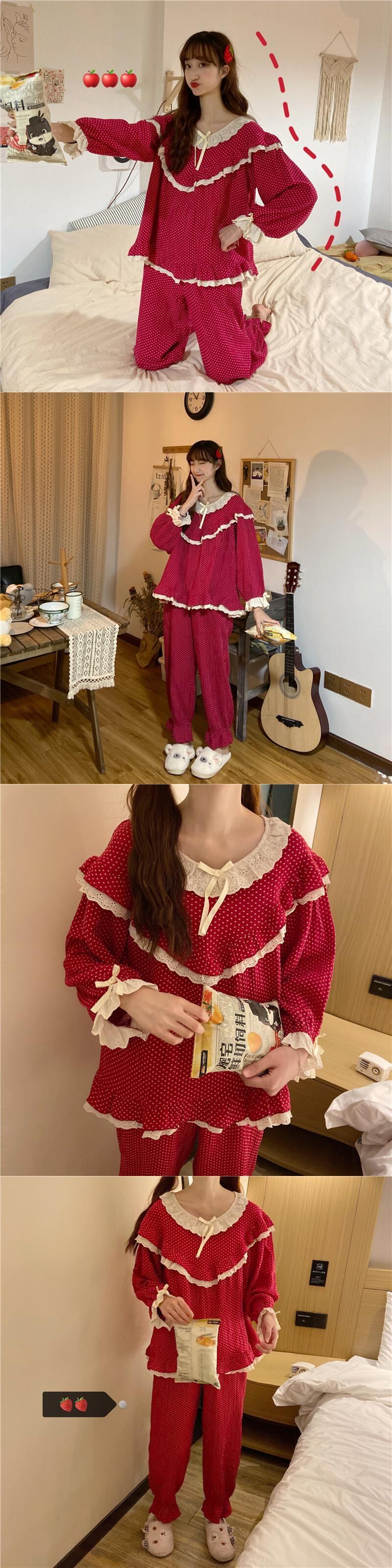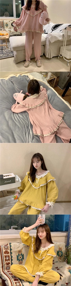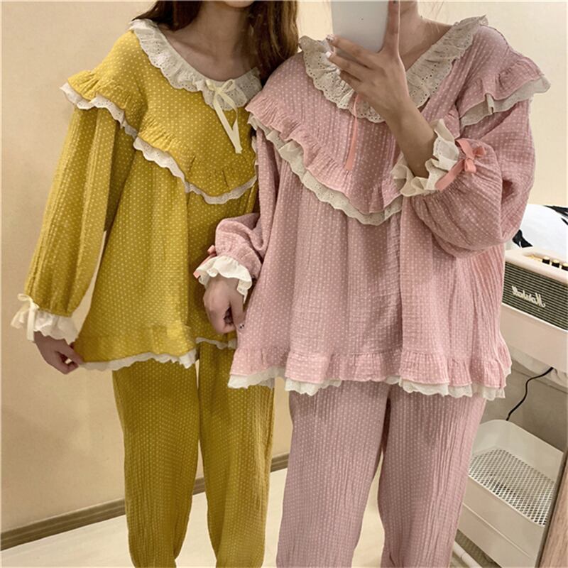 2020年春の新しいスウィートプリンセススタイルのルーズフリルボウ半袖パジャマレディースホームサービスツーピーススーツ misskkl36971180246