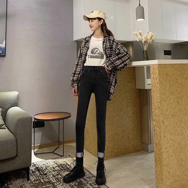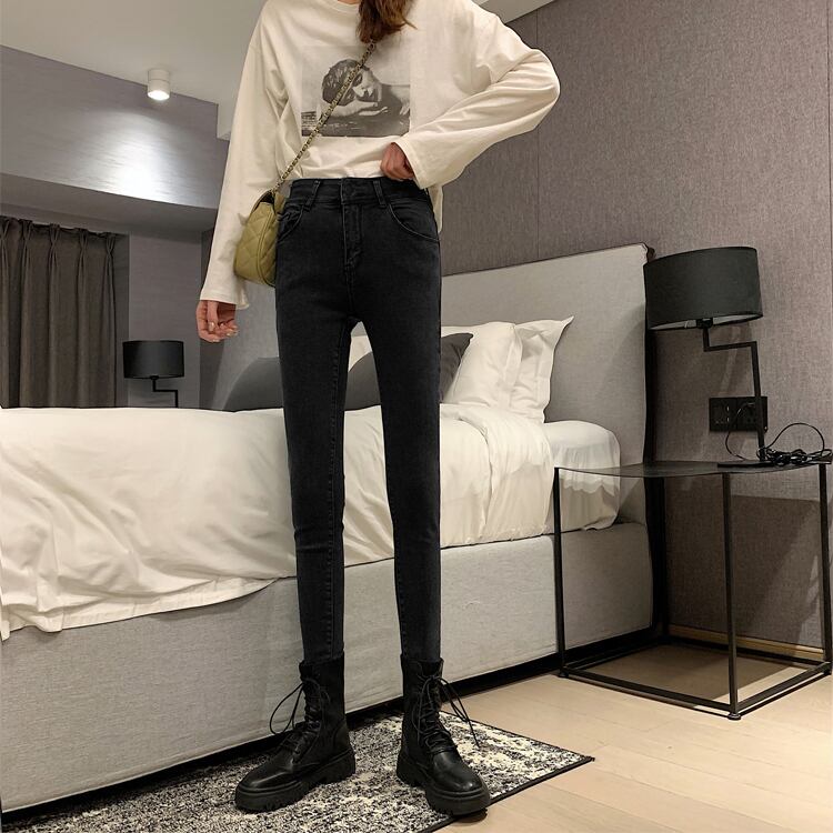 2020年春秋新作ハイウエストスリミングネットレッドレトロオールマッチスキニーストレッチパンツ9点ジーンズレディース misskkl76386439557