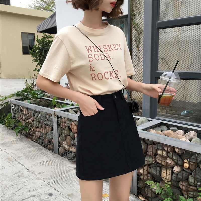 春と秋のバージョン2020新しいシックなハイウエストスリムデニムスカートAラインスカートファッションブラックハーフスカート女性イン misskkl94837201461