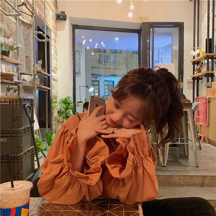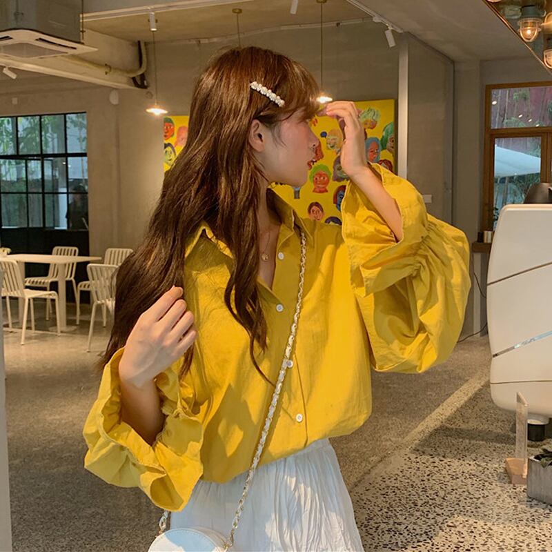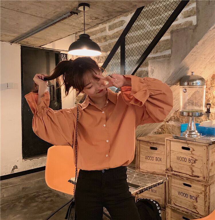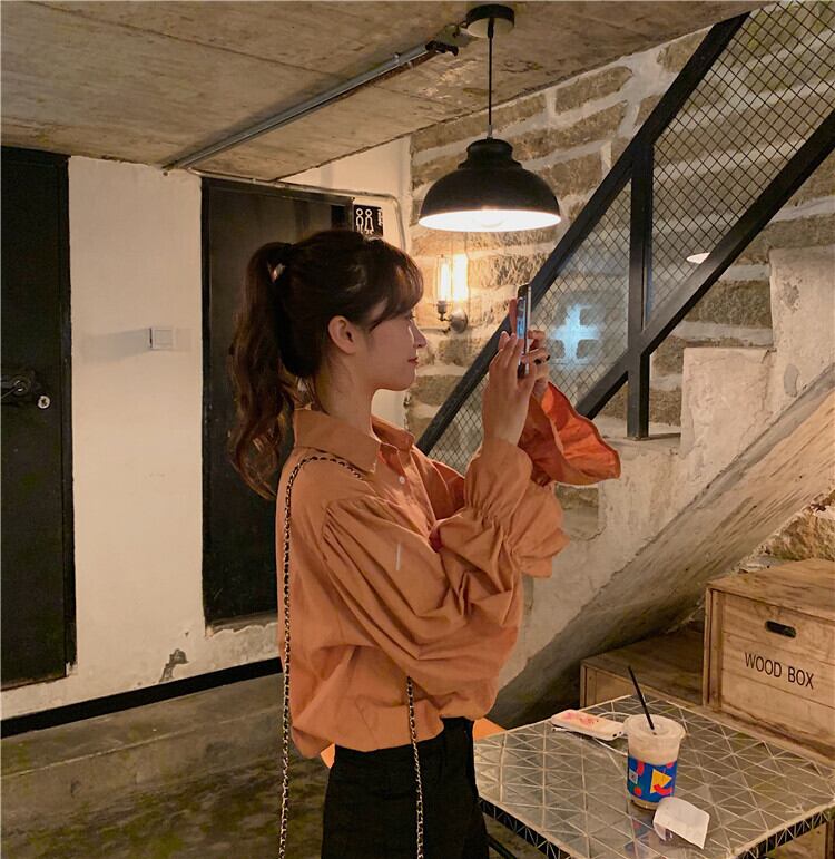 2020年春秋バージョンの新作インスーパールーズミドル丈ランタンスリーブポロカラー長袖シャツレディース misskkl21059747072