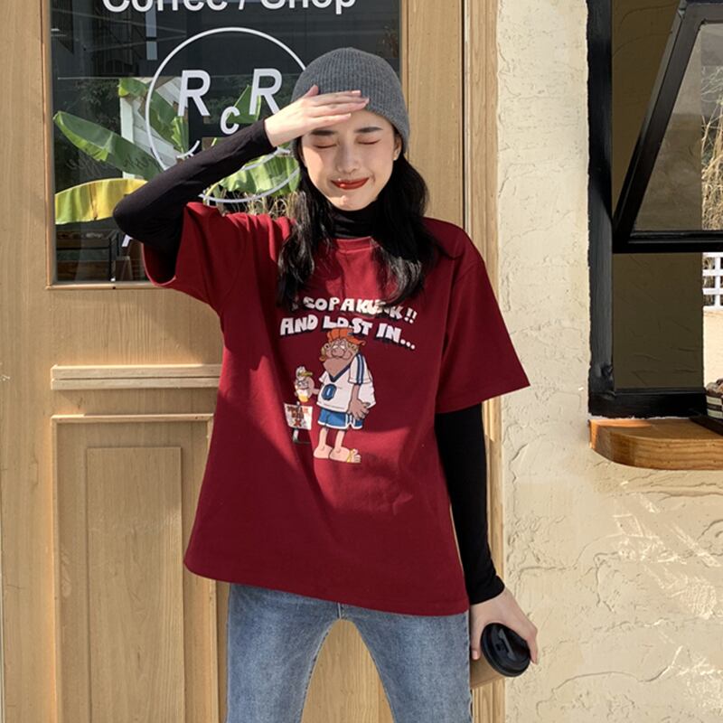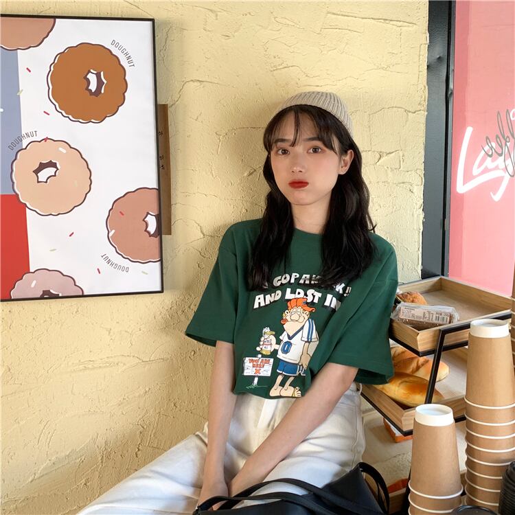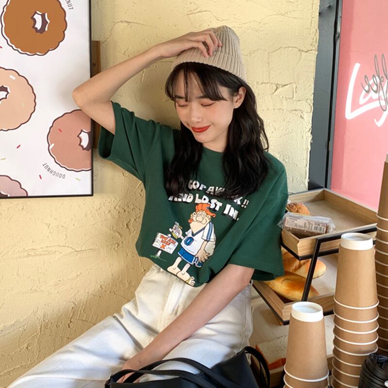 春バージョン2020新しい面白い漫画プリントルーズBF風ニッチオールマッチ半袖Tシャツトップ女性 misskkl91867989640