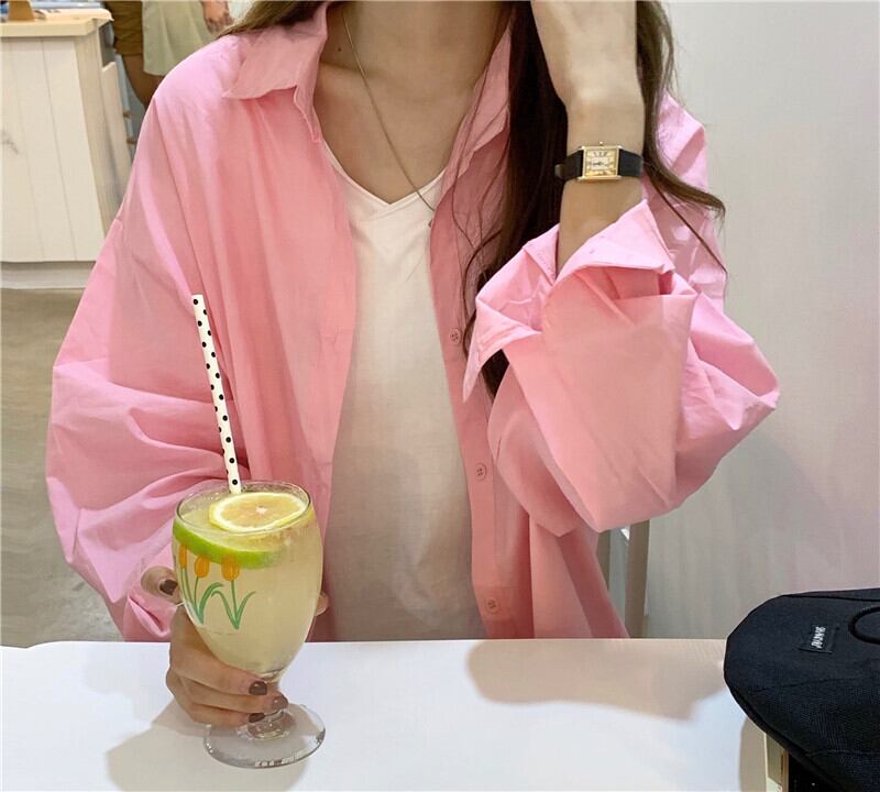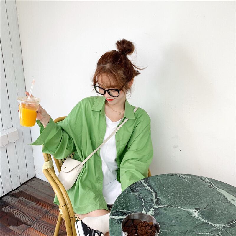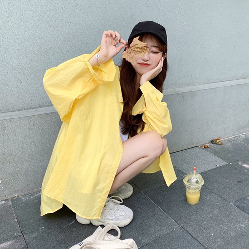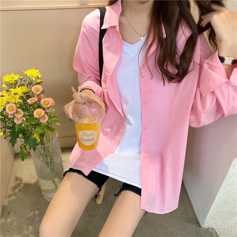 2020年春の新しい小さな新鮮なキャンディーカラーウエスタンスタイルの年齢削減ルーズミドル丈学生長袖日焼け止めシャツ女性 misskkl95285063995