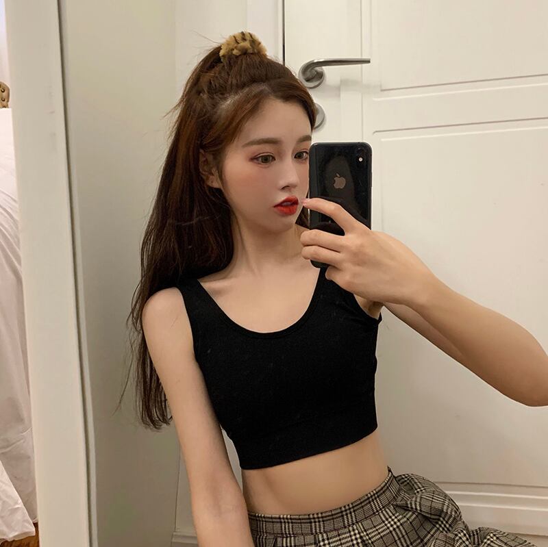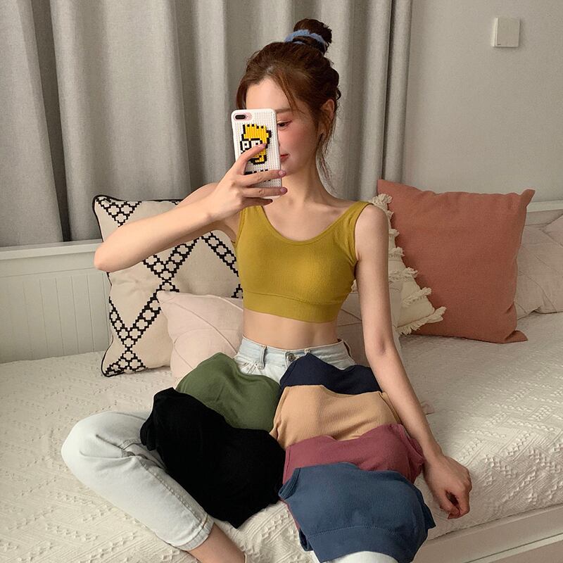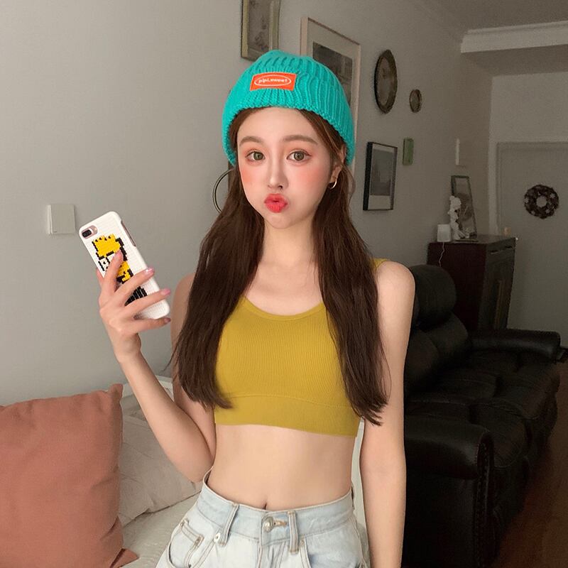 胸パッド付きの美しいバックスポーツキャミソールの春バージョン、スチールリングブラなし、学生用チューブトップスタイルのギャザーの下着女性 misskkl36630136172
