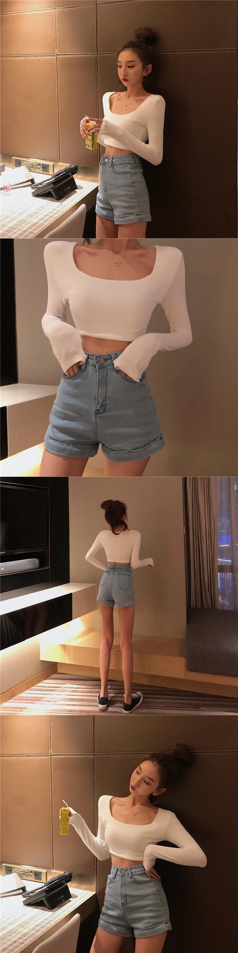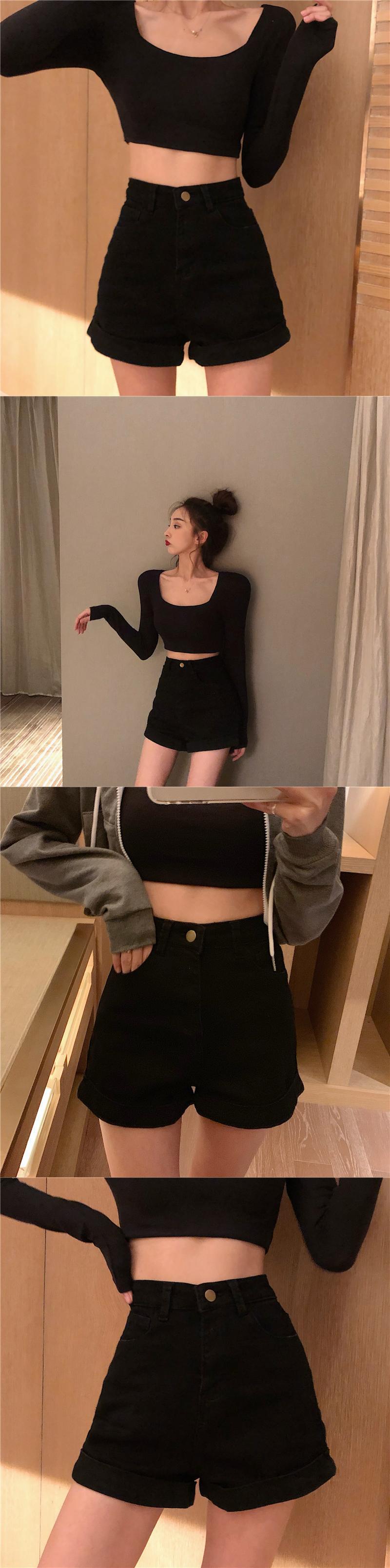 2020年春の新しいシックなレトロな香港スタイルのハイウエストは薄いワイルドストレッチデニムショーツ女性パンツインタイド misskkl64973656569