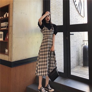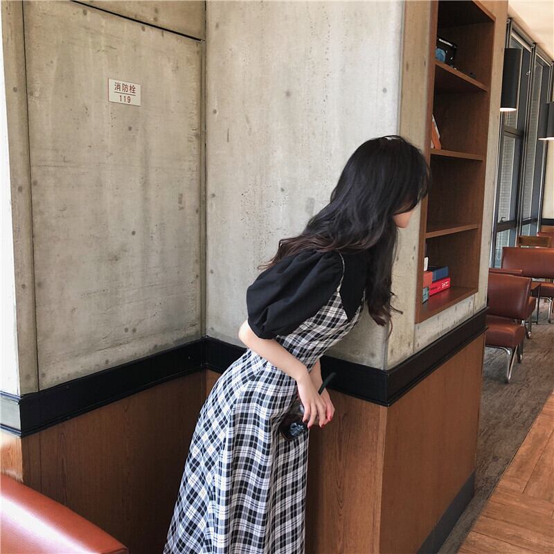 2020年春レトロフレンチミッドロングウエストウエストとウエスタンスタイルのチェックスリングドレスの女性 misskkl85009414481