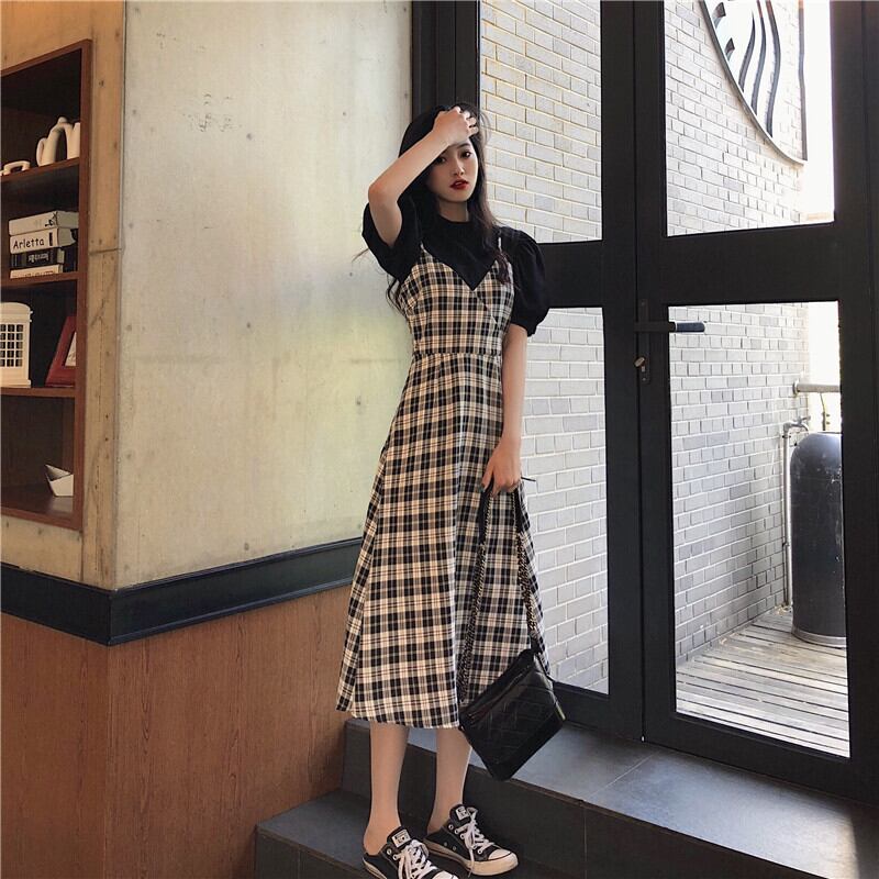 色:黒いボトムピース,ワンピースのチェック柄スカート