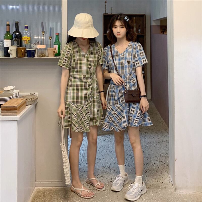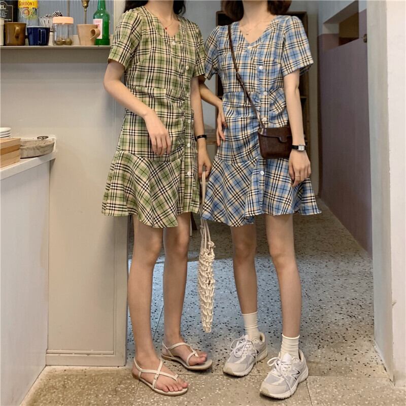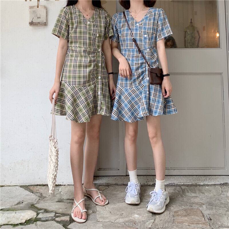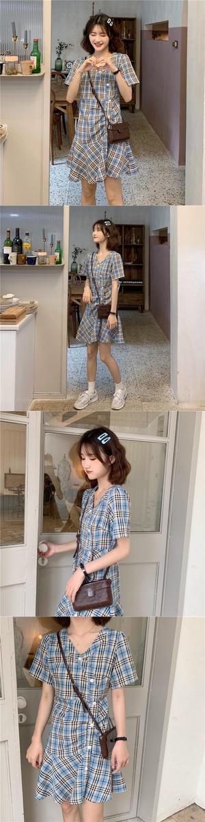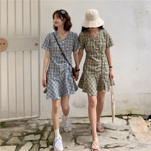 スプリングVネック薄手格子柄ドレス レディース 春物 misskkl80727153874