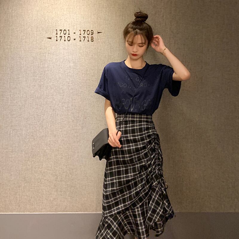 スプリングハイウェスト薄手プリーツ格子柄スカート レディース 春物 misskkl57293933076