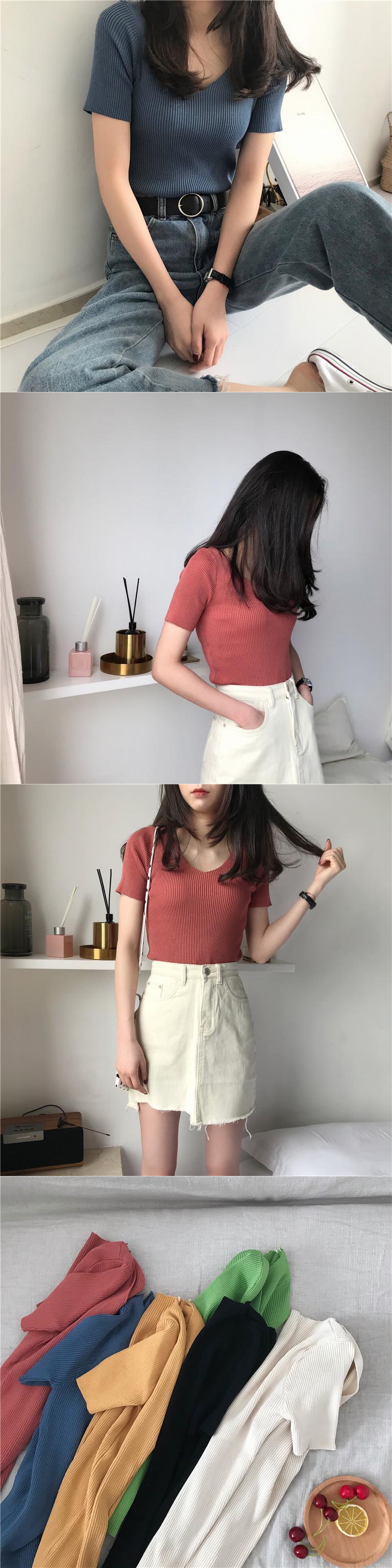 スプリングスリムブルーVネックセーター 春物 misskkl49958272099
