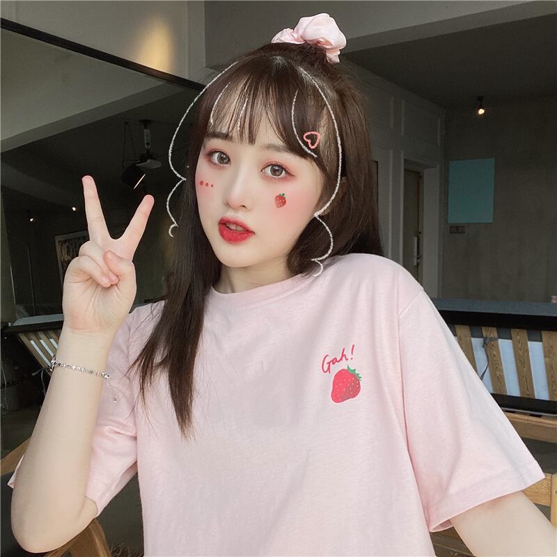 スプリングプリント柄ルーズTシャツ トップス ピンク 大きめサイズ 春物 misskkl30015644082