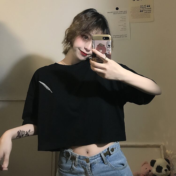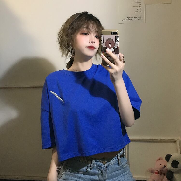 スプリングレッドルーズショート刺繍Tシャツ トップス レディース 春物 misskkl3042912874