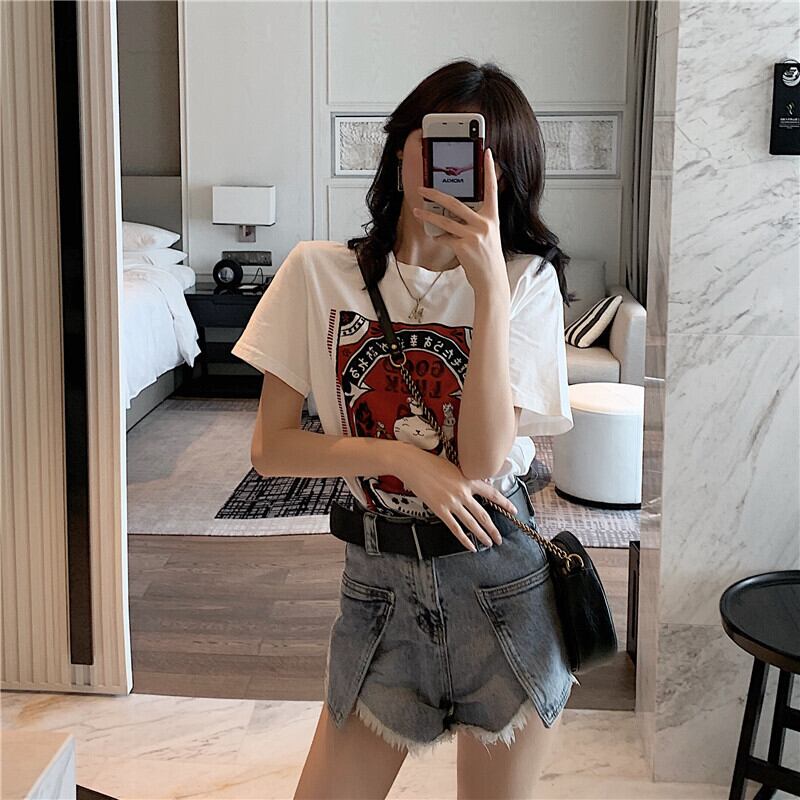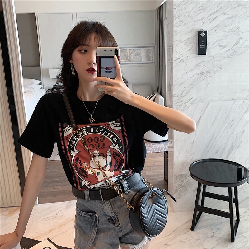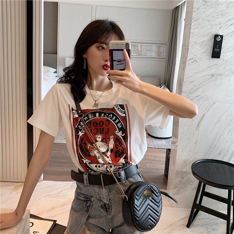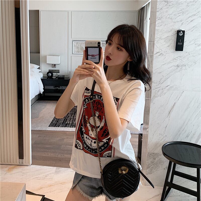 スプリングスタンダードプリントルーズレッドTシャツ レディース レトロ 春物 misskkl12033333415