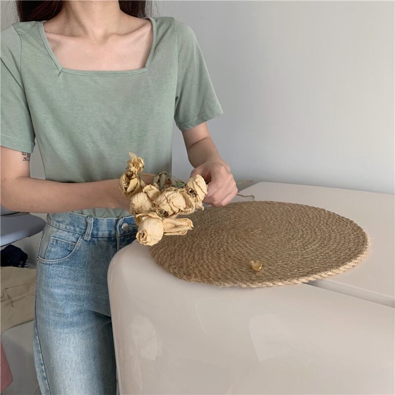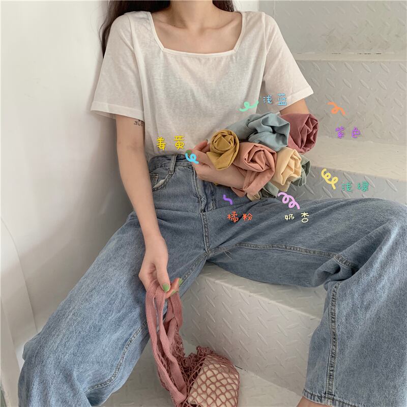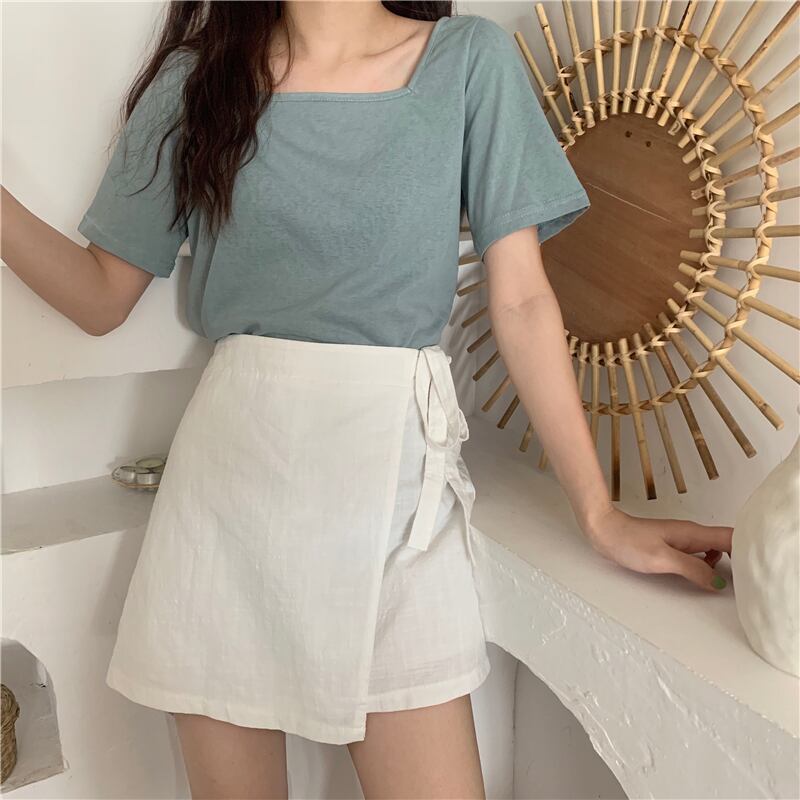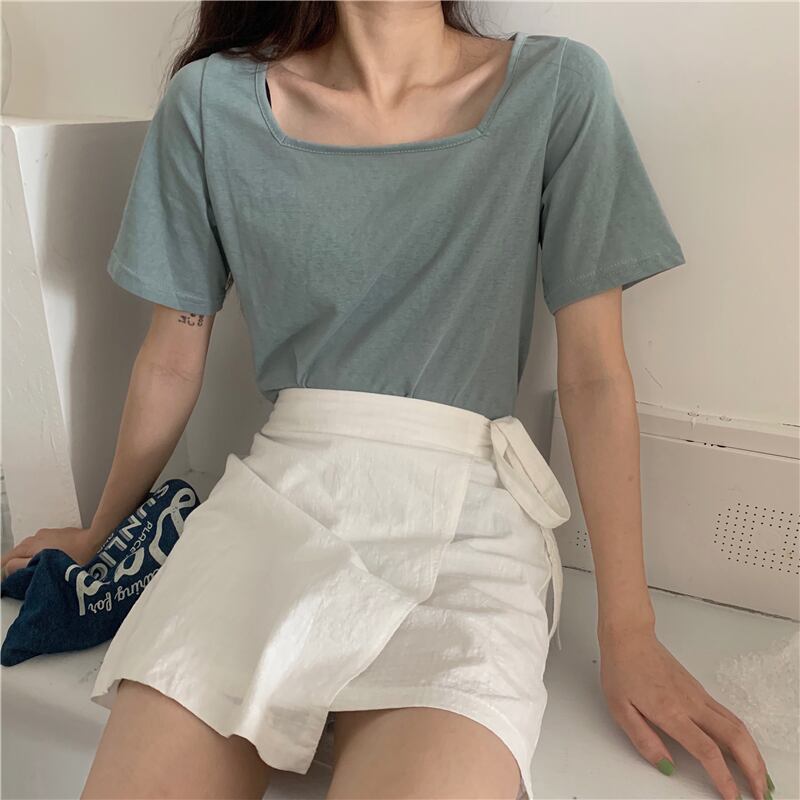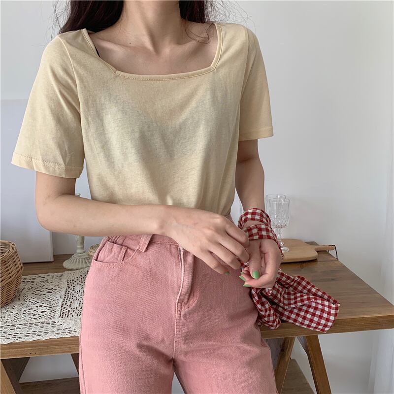 スプリングベーシックソリッド カラースリムショート半袖スリーブTシャツ レディース ハーフスリーブ 春物 ソリッドカラー スクウェア misskkl57513751918