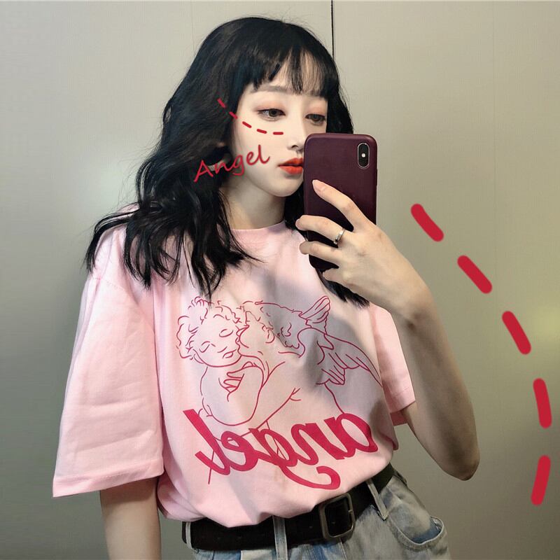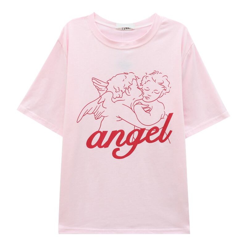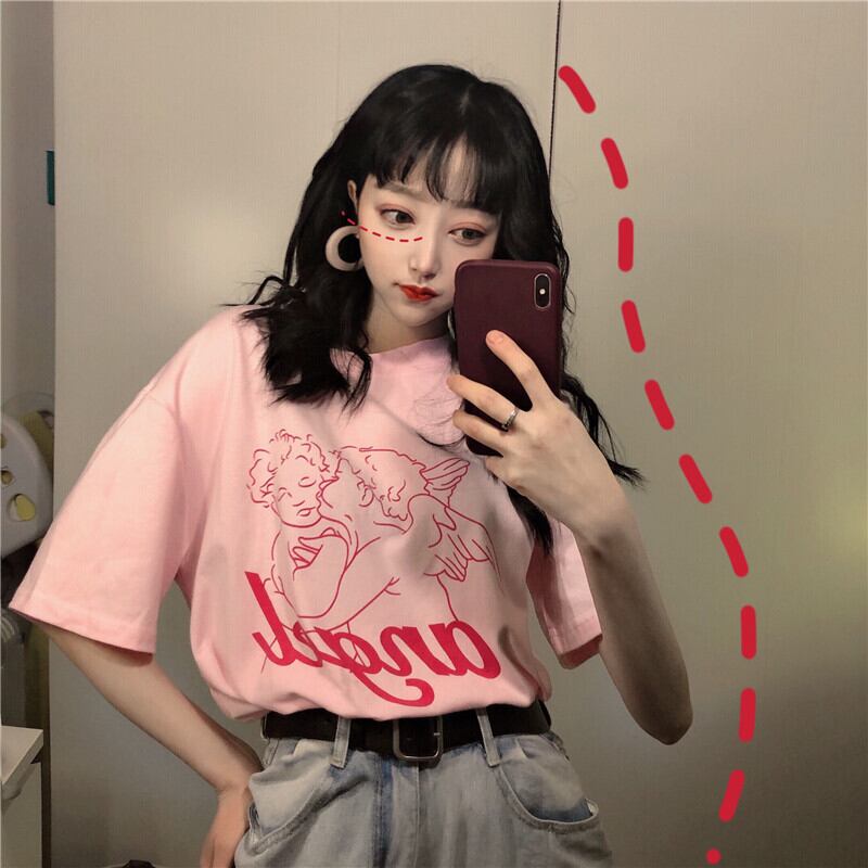 スプリングスタンダードレッドルーズプリントTシャツ トップス レディース レトロ 春物 misskkl96281266923