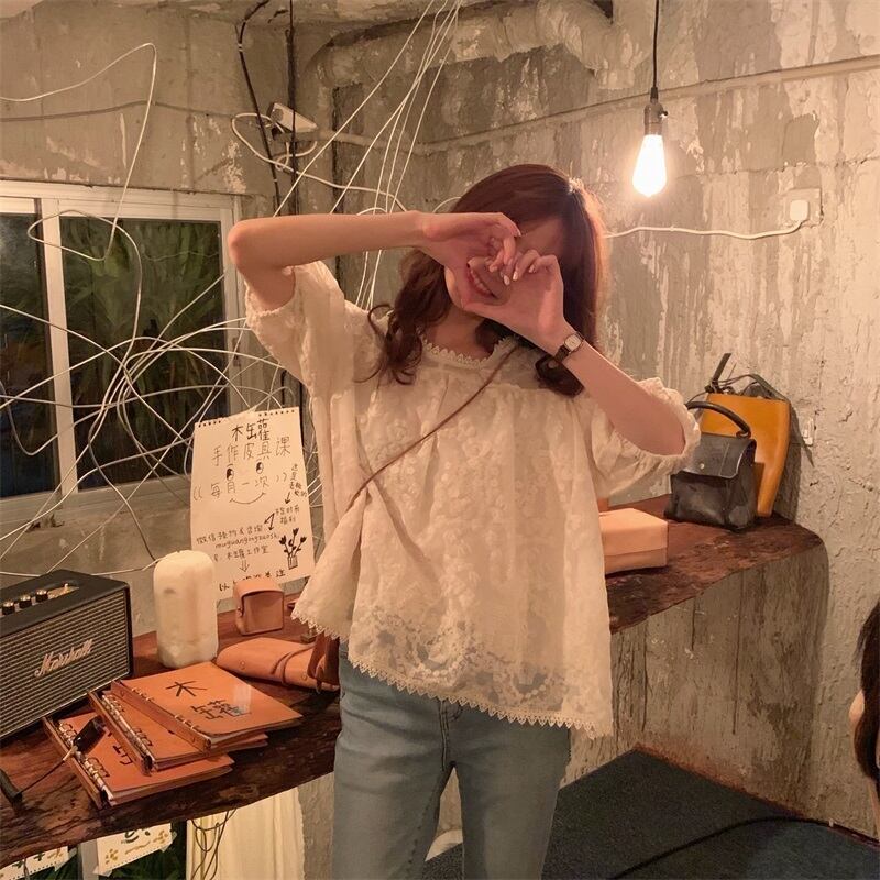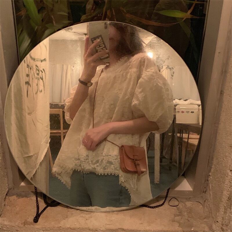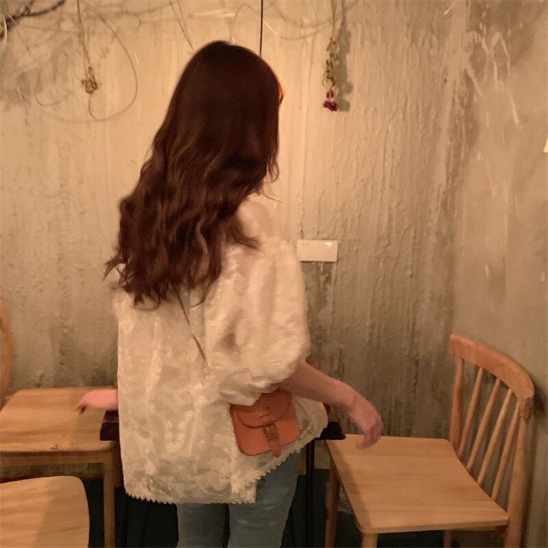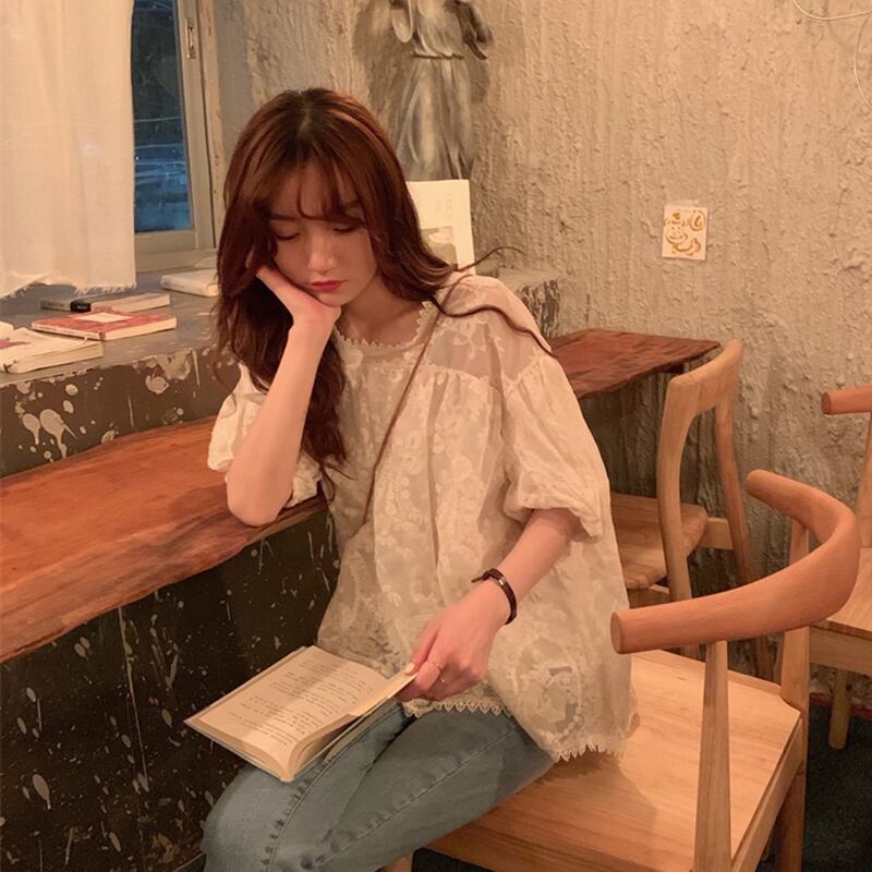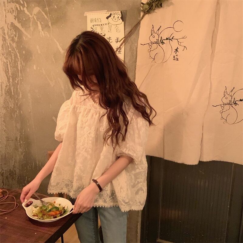 スプリング刺繍レッドルーズレーススリーブシフォンシャツ レディース 春物 misskkl91483005495