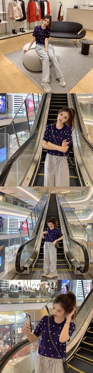 スプリングルーズショートスタイルレッドスリーブ半袖セーター トップス ハーフスリーブ 春物 misskkl15823859614