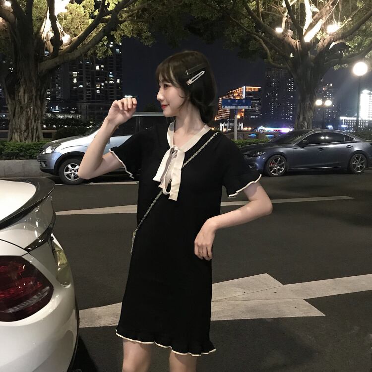スプリングスタンダードスタイルリボン薄手ニットドレス レディース レトロ レース 春物 misskkl49470115932