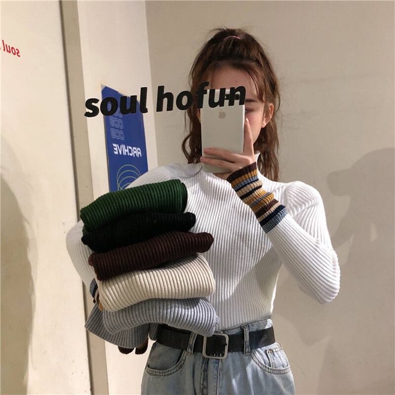 ホワイトシャツ スプリングオータムスタイルソリッド カラーセーター ニットトップス 春物 秋物 ソリッドカラー misskkl58437919056