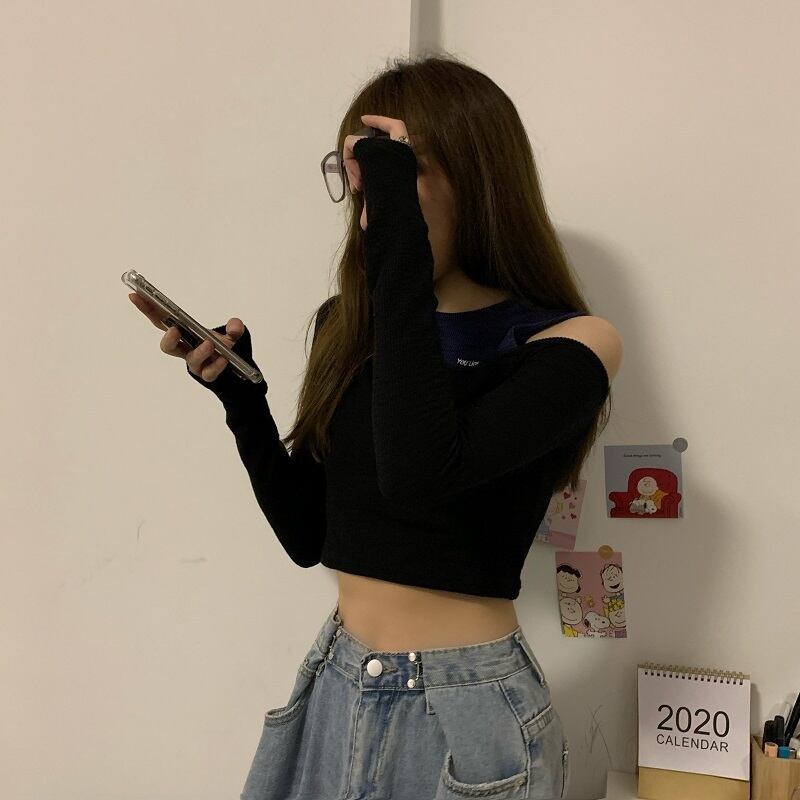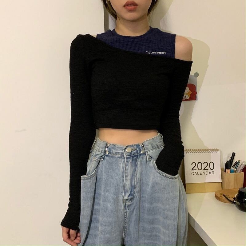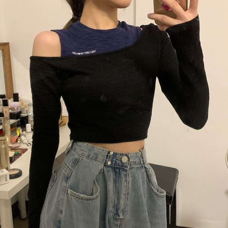 スプリングスリムショートTシャツ トップス ロング 春物 オフショルダー misskkl7932653675
