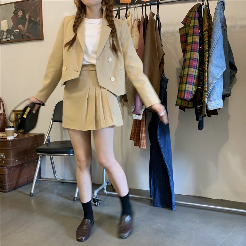 色:コーヒーカラーツーピーススーツ,黒のツーピース