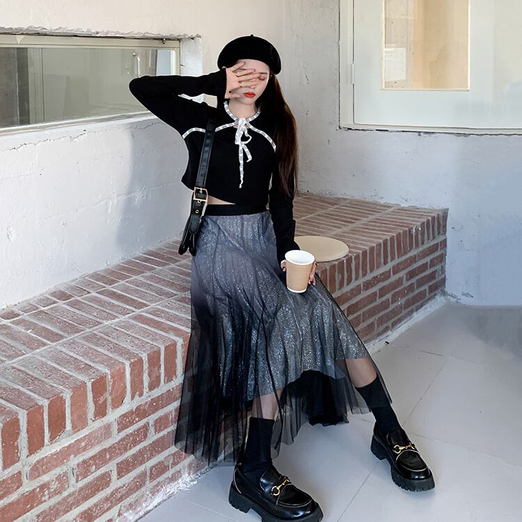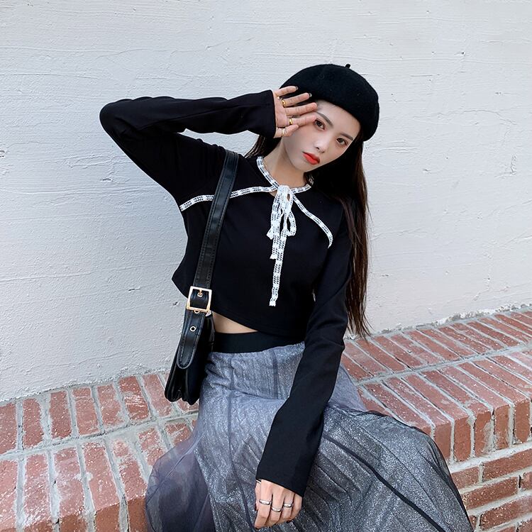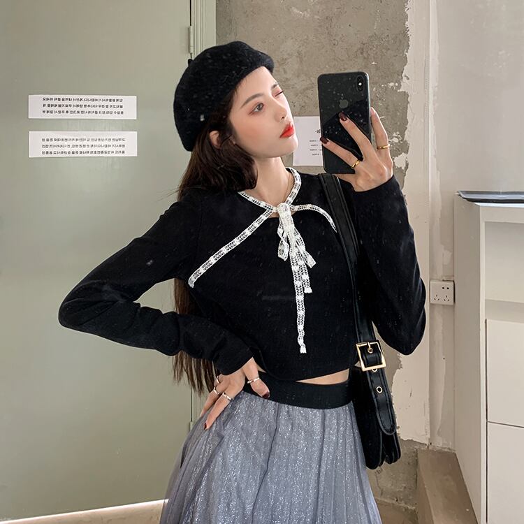 スプリングオータムスタンダードスタイルスリムレースブラウス ロング レトロ 春物 秋物 misskkl49650178280
