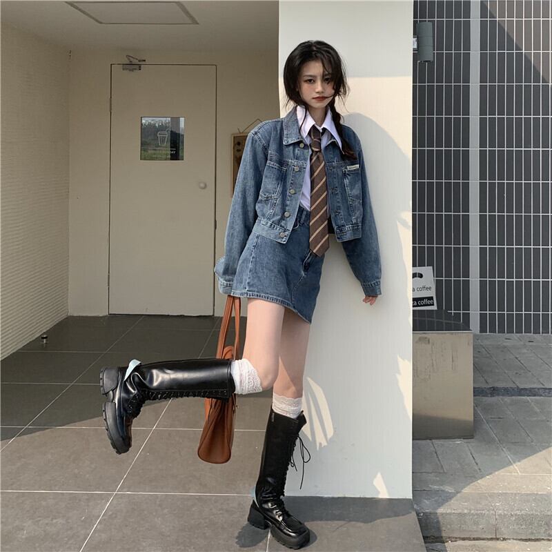 スプリングオータムスタンダードルーズショートジャケット ロング レトロ ストリート 春物 秋物 misskkl60835397203