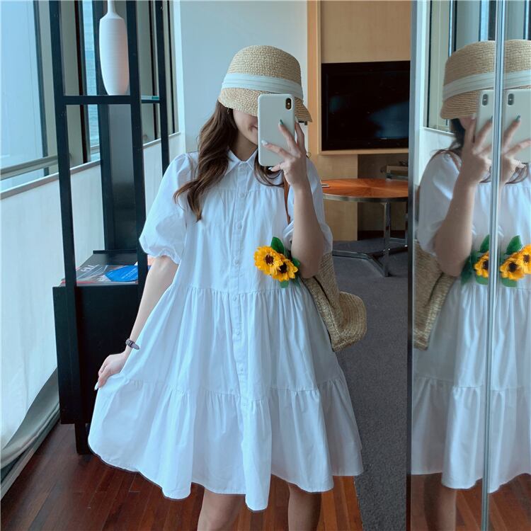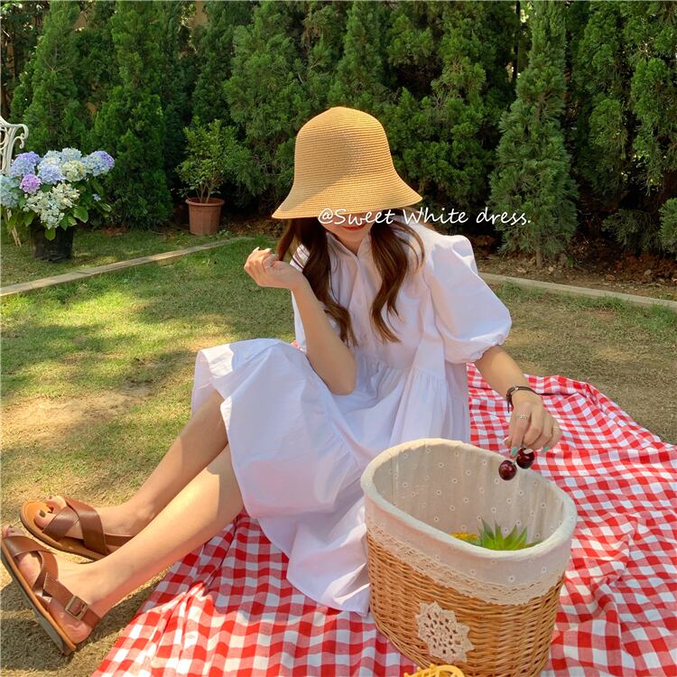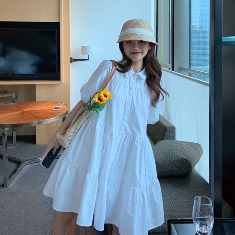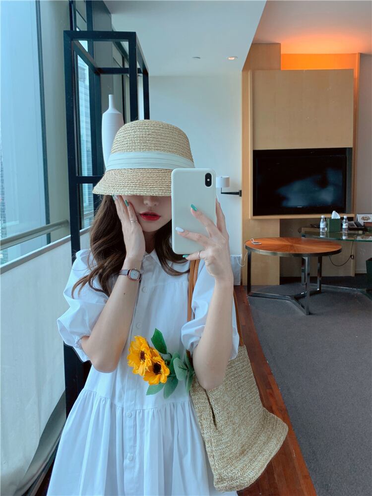 サマーウェストカラーホワイトドレス スカート 夏物 ピュア misskkl44390894633