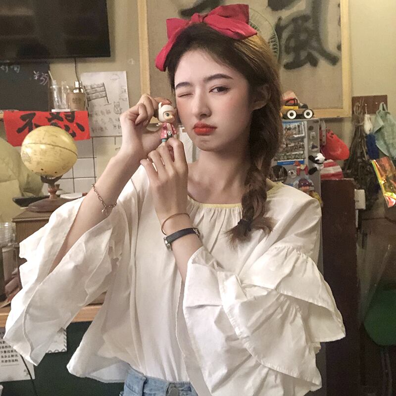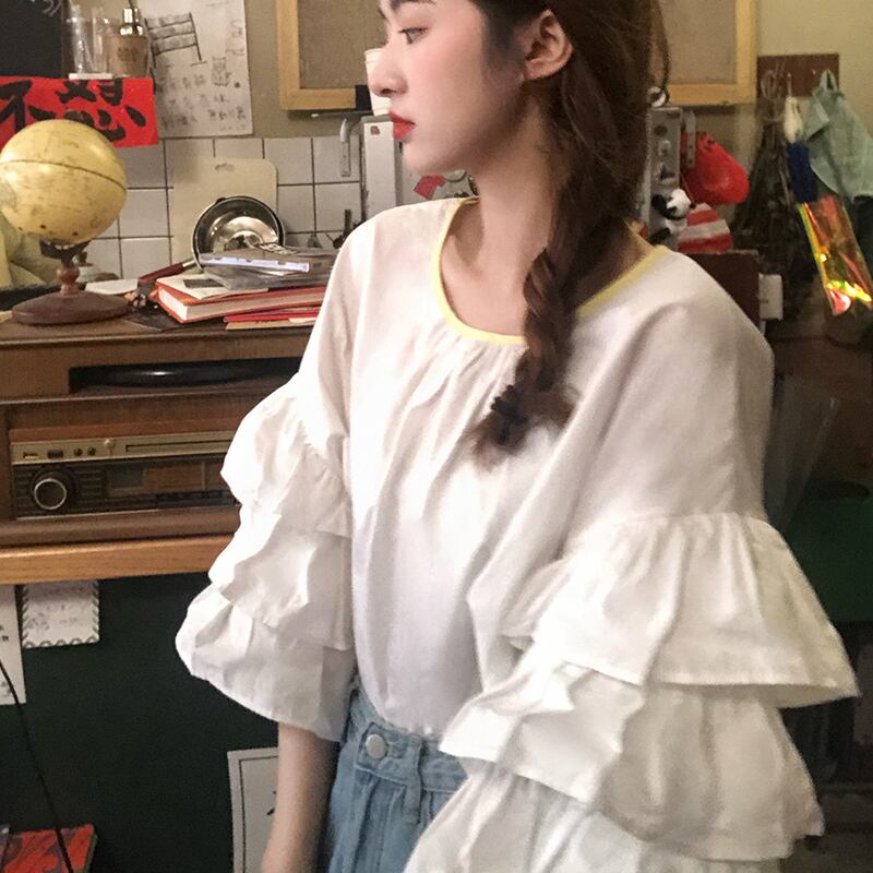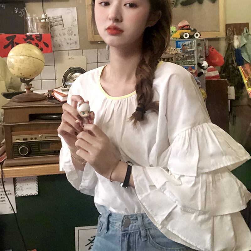 スプリングオータムスリーブルーズホワイトシャツ トップス 大人ガーリー スウィート キュート カジュアル 春物 秋物 misskkl73010418180