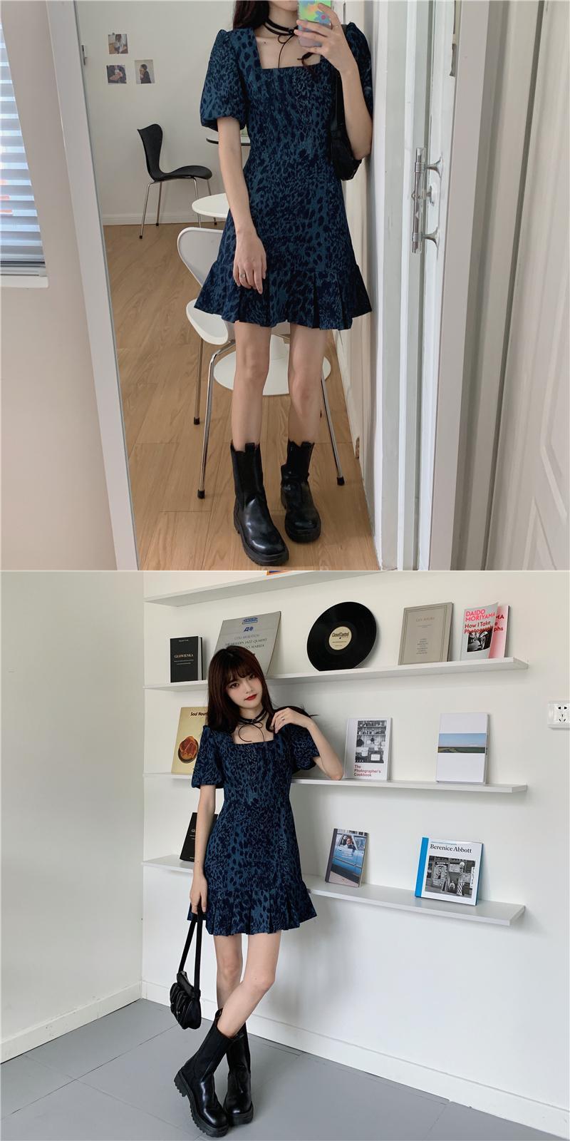 スプリングウェスト薄手レオパードプリント柄半袖スリーブドレス スカート ショート ハーフスリーブ 春物 スクウェア misskkl56551696916