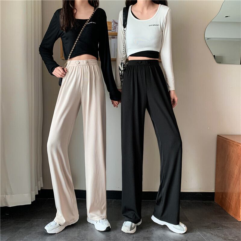 ワイドレッグパンツ スプリングオータムハイウェストウェストカジュアル薄手ルーズ 春物 秋物 ワイドパンツ misskkl83302270447