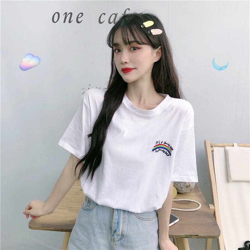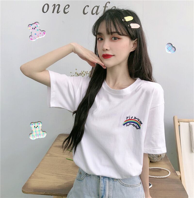 サマープリントルーズホワイトTシャツ トップス レディース 夏物 misskkl28835819