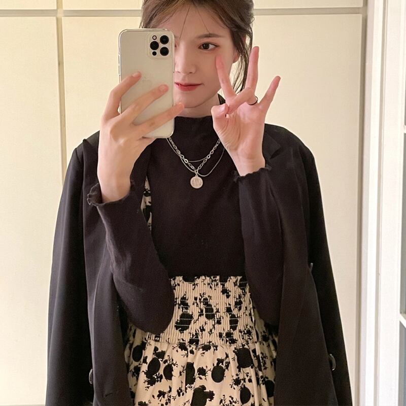 スプリングオータムウェスト水玉フローラルAラインスカート 春物 秋物 花柄 misskkl97299633908