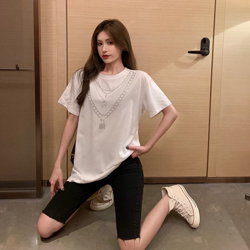 スプリングオータムルーズラウンドネックTシャツ トップス レディース 春物 秋物 Oネック misskkl77648201071