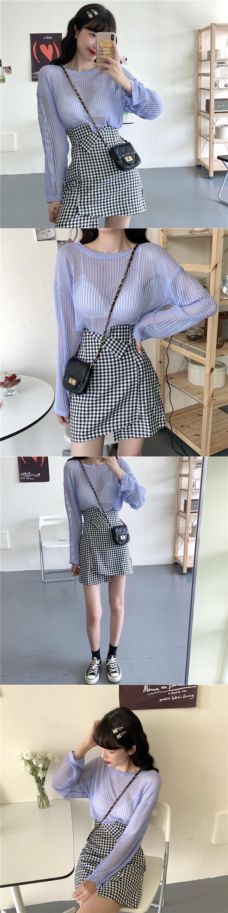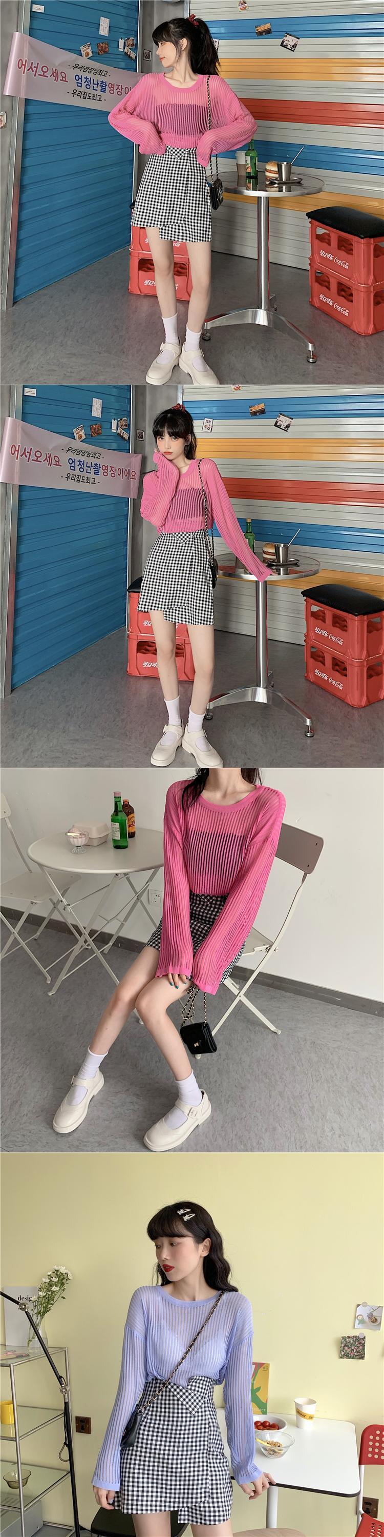 色:ブルーパープルセーター,ロイヤルブルーのセーター,ローズレッドのセーター,アップルグリーンセーター,黒と白のチェックスカート
