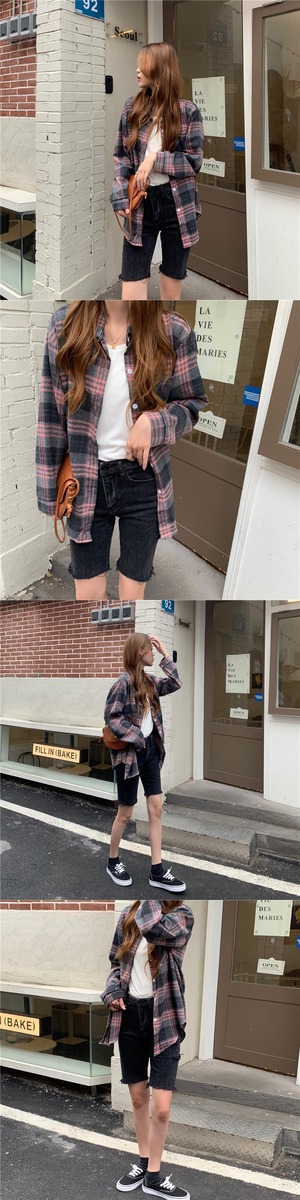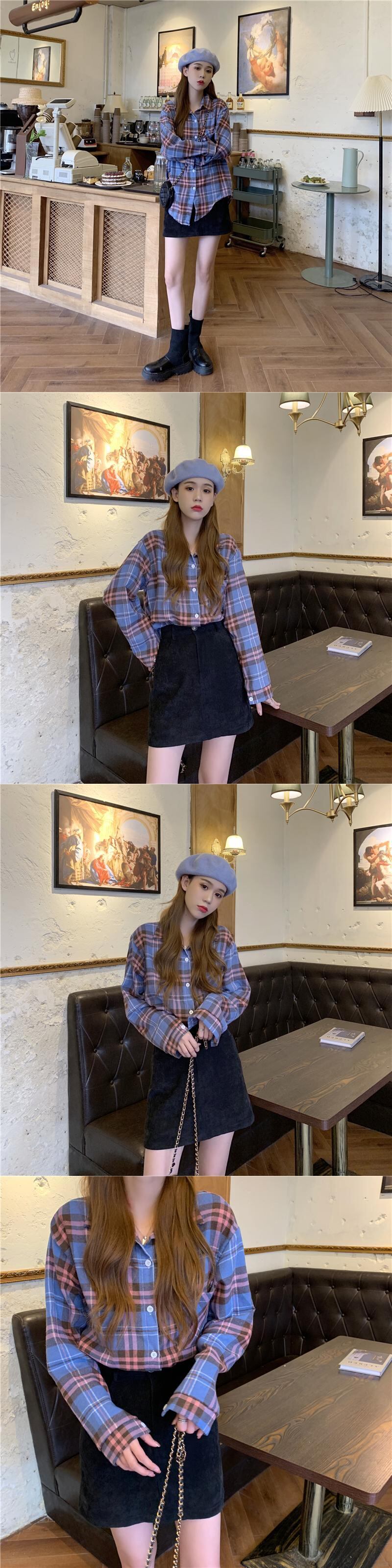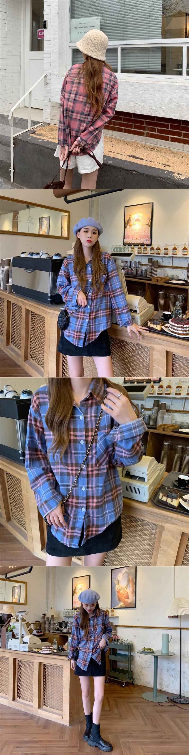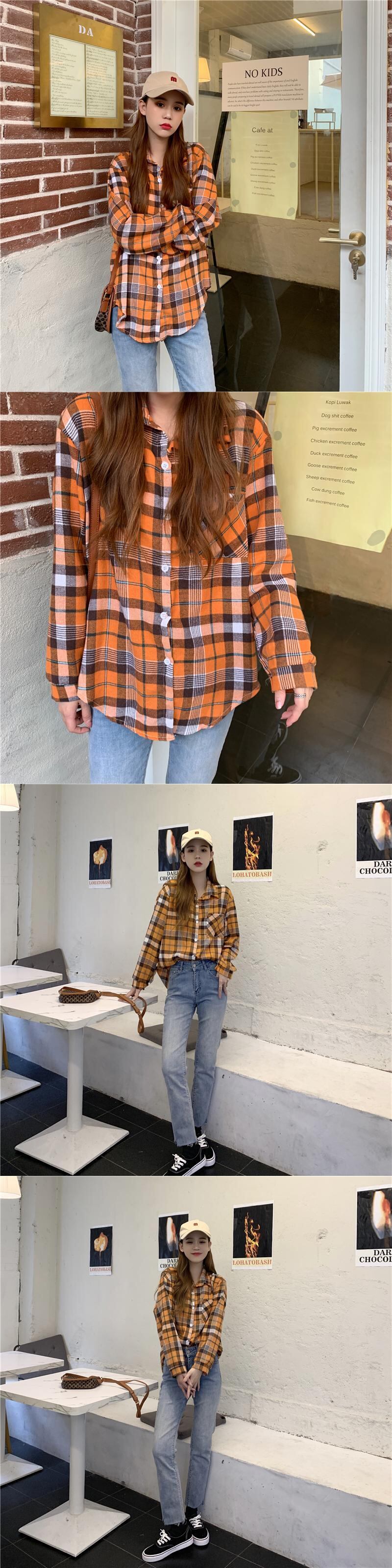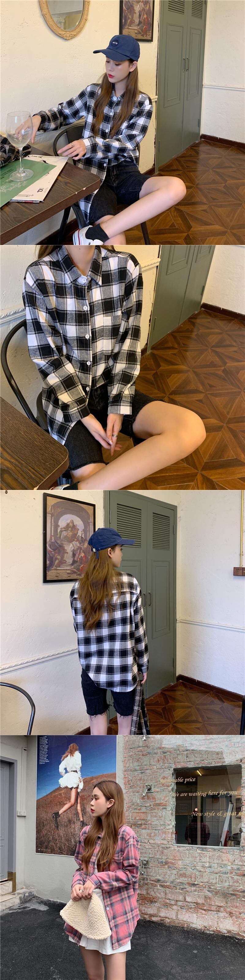 スプリングオータムルーズスタイル格子柄シャツ トップス レディース ロング 春物 秋物 misskkl37437729447